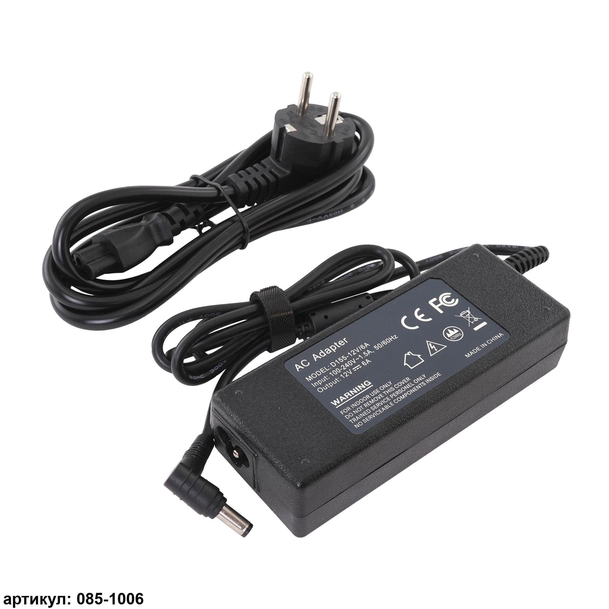 Блок питания для лед подсветки 12V 6A (72W) 5.5х2.5мм пластиковый