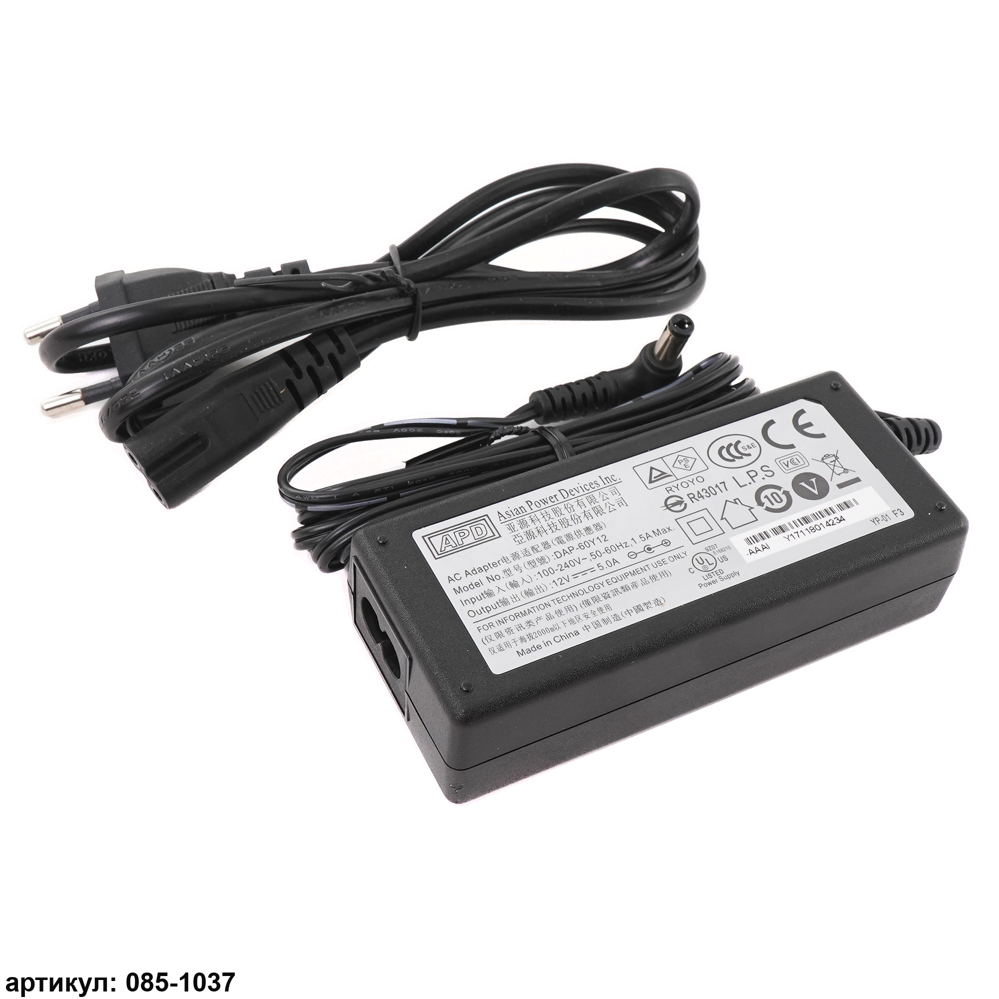 Импульсный блок питания 12V 5A (60W) используется для питания, ноутбуков, неттопов, компьютеров, мониторов, телевизоров, ультрабуков, светодиодных ламп, светодиодных лент, модулей и любых устройств на основе LED светодиодов, совокупное потребление которых не превышает 60 Вт. Блок питания имеет прочный пластиковый корпус. Блок питания подключается к сети 220V и оснащен защитой от перенапряжения, короткого замыкания, перегрузки, электромагнитных помех. Совместимые P/N: DA-60Y12, DA-60Z12, Y1926NBD
