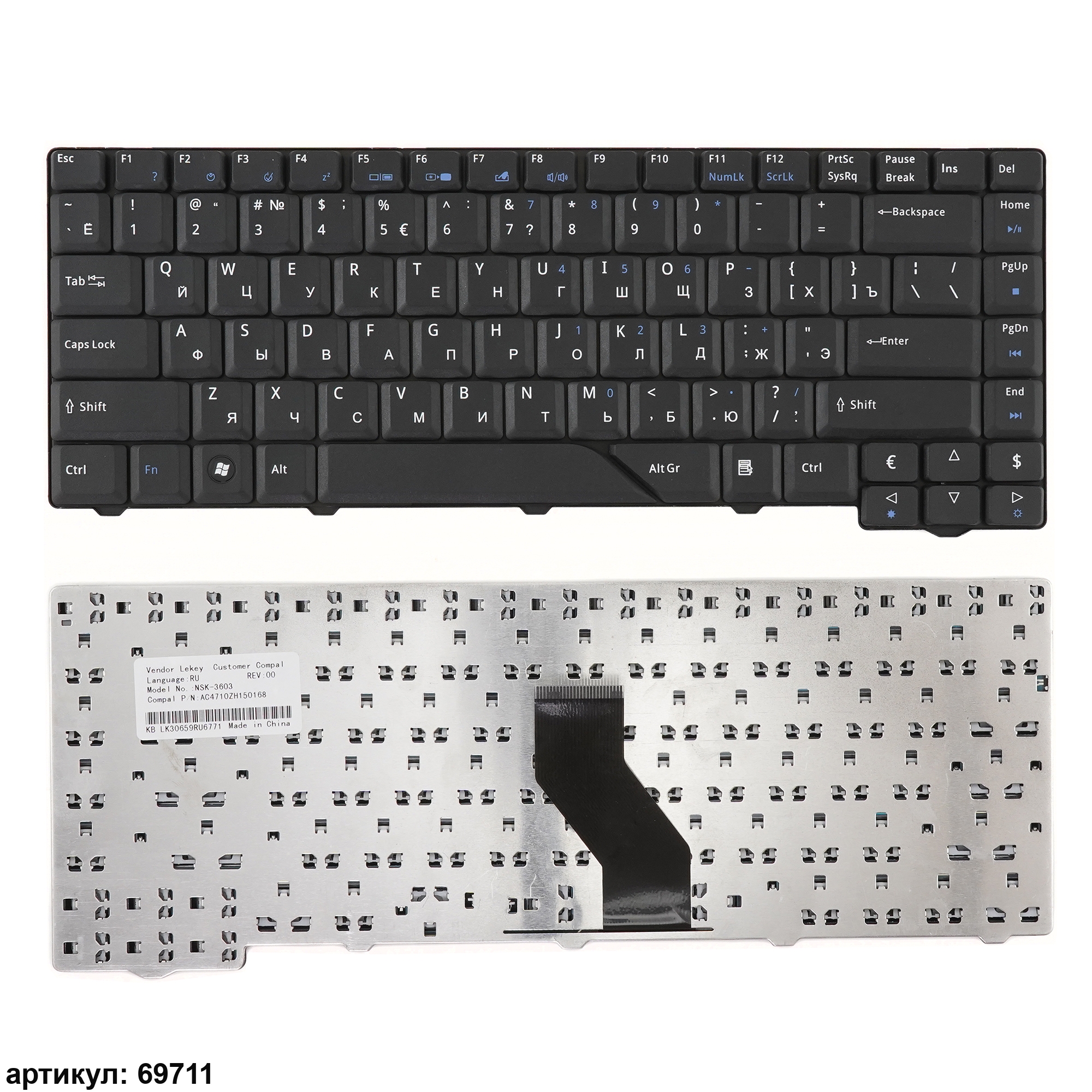 Клавиатура подходит к ноутбукам: Acer Aspire 4210, 4220, 4230, 4310, 4315, 4320, 4330, 4430, 4510, 4520, 4520G, 4530, 4710, 4715, 4715Z, 4720, 4720G, 4720Z, 4730, 4910, 4920, 4920G, 4930, 4930G, 4937G, 5157, 5220, 5230, 5235, 5300, 5310, 5315, 5320, 5520, 5520G, 5530, 5530G, 5535, 5700, 5710, 5715, 5715Z, 5720, 5720G, 5720ZG, 5730, 5730ZG, 5900, 5910, 5920, 5920G, 5930, 5930G, 6920, 6920G, 6935, 6935G, eMachines E510Совместимые P/n: MP-07A23SU-4421, MP-07A23SU-6981, NSK-H370R, NSK-H390R, PK1304701H0, PK1304702H0, 6037B0028919, 9J.N5982.70R, 9J.N5982.90R, KB.INT00.452, ZD1, K031830A1, MP-07A23SU-698, NSK-H360R, NSK-H3V0R, AEZD1700010, PK1301K01H0, PK1301K02H0, PK1303M01H0, 9J.N5982.60R, 9J.N5982.E0R, 9J.N5982.V0R, KB.INT00.047, NSK-AKA0R, 9J.N1A82.A0R, NSK-H3E0R, PK130470240, AEZD1700110, MP-07A23SU-920, 9J.N5982.V1D, 9J.N5982.E1D, NSK-H3V1D, NSK-H361D, PK1301K0100, V072146AS1, AEZD1R00010, MP-07A23U4-442, V-0109BIAS1-US, AEZD1R00110, NSK-AKA01, NSK-AKA1D, NSK-H3E01, NSK-H3E1D, NSK-H3V01, NSK-H371D, NSK-H3701, 9J.N1A82.01D, 9J.N1A82.A01, 9J.N1A82.A1D, 9J.N5982.61D, 9J.N5982.71D, 9J.N5982.E1D, 9J.N5982.E01, 9J.N5982.V01, 9J.N5982.V1D, 9J.N5982.701, MP-07A23U4-698, MP-07A23U4-442, KB.INT00.036, PK1301K0200, PK130470100