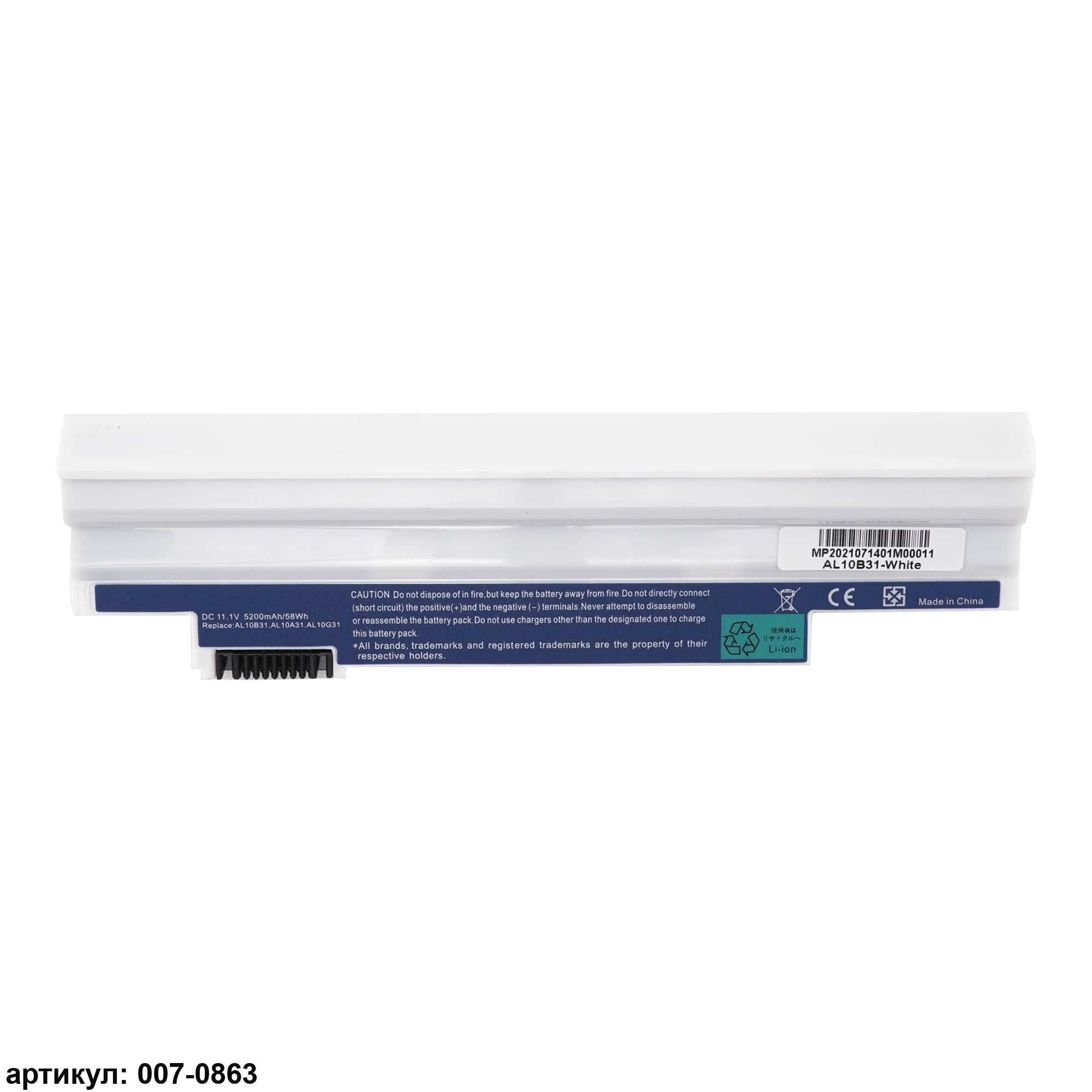 Совместимые P/N: AL10A31, AL10B31, AL10G31, AL10BW, NAV70, P0VE6, PAV70, POVE6, AK.003BT.071, AK.006BT.074, BT.00303.022, BT.00603.114, BT.00603.121, LC.BTP00.128, LC.BTP00.129, LC.BTP0P.010, 3ICR1765-2, ICR17/65