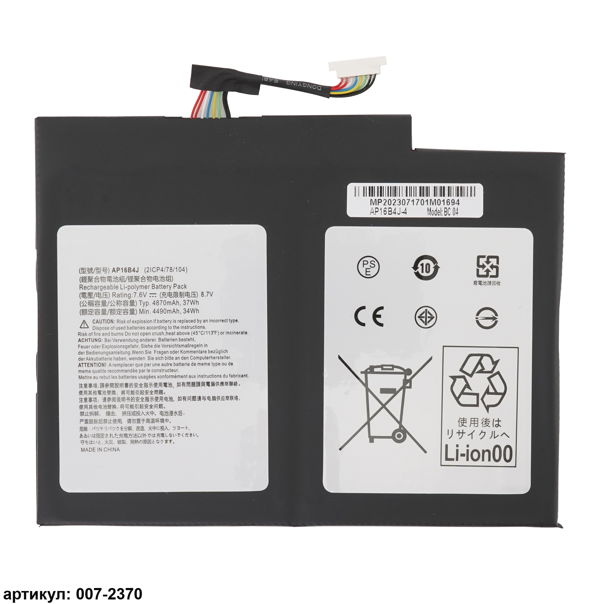 Совместимые P/N: AP16B4J, 2ICP4/78/104, KT.00204.003, KT.00204.005, KT00204005