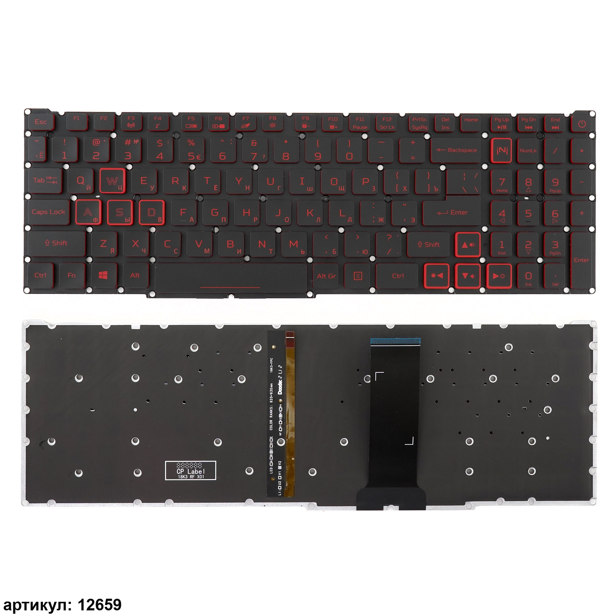 Клавиатура подходит к ноутбукам: Acer Nitro 5 AN515-54, AN515-55, AN515-43, AN517-51, AN715-51