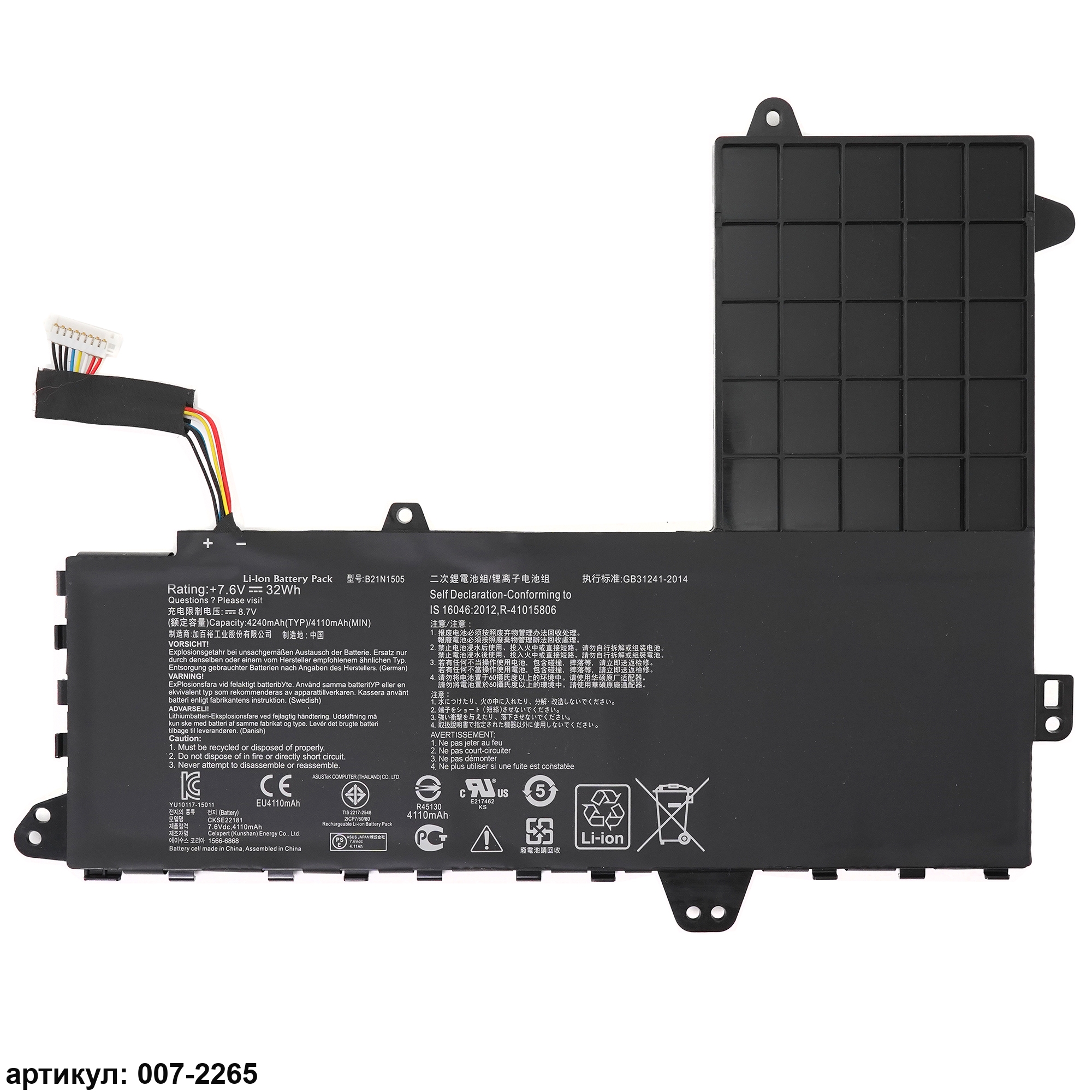 Подходит к сериям ноутбуков: Asus E402S, E402SA, E502SСовместимые P/N: B21N1505, 0B200-01400200M