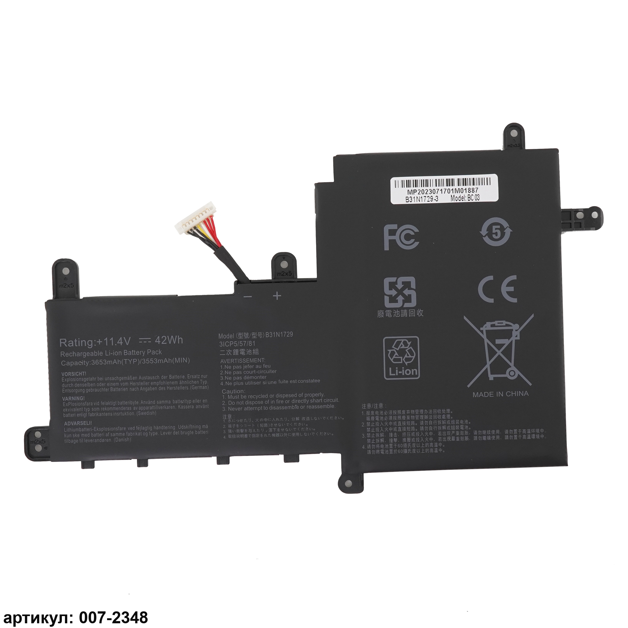 Совместимые P/N: B31N1729, 0B200-02920000, 3ICP5/57/81