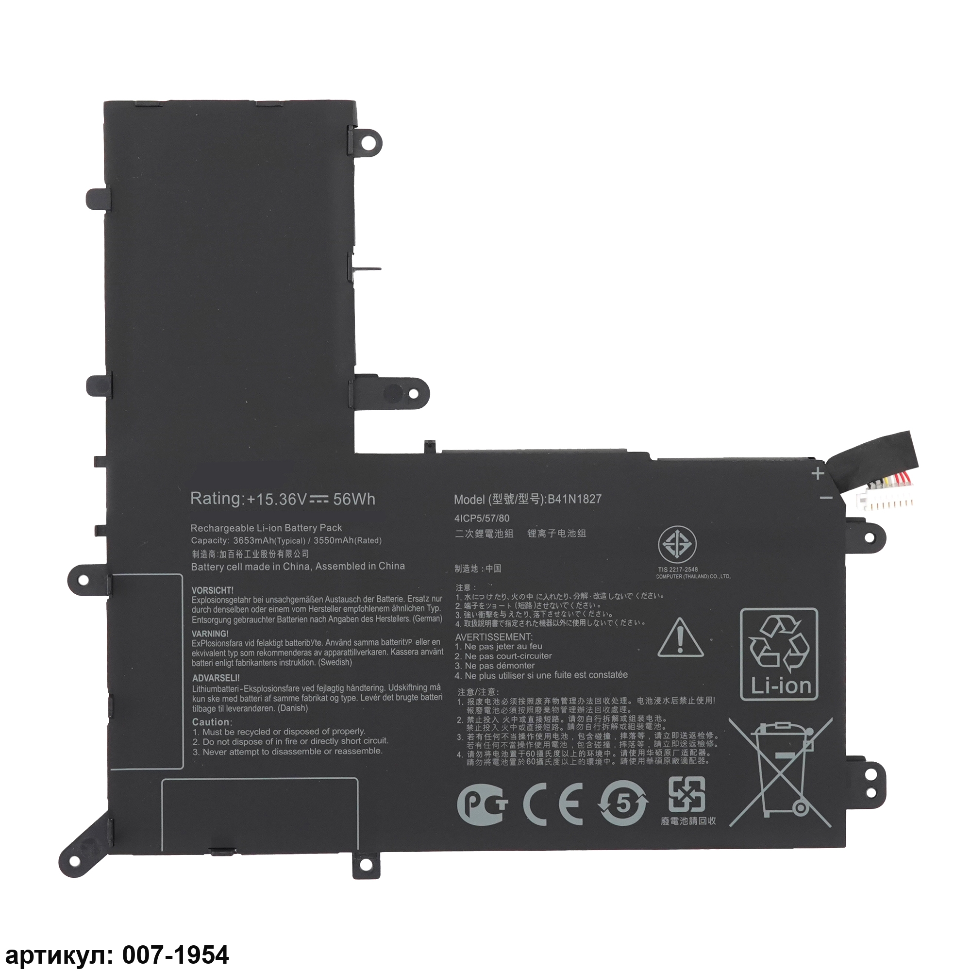 Подходит к сериям ноутбуков: Asus ZenBook Flip 15 UX562FA, UX562FDСовместимые P/N: 0B200-03070200, B41N1827