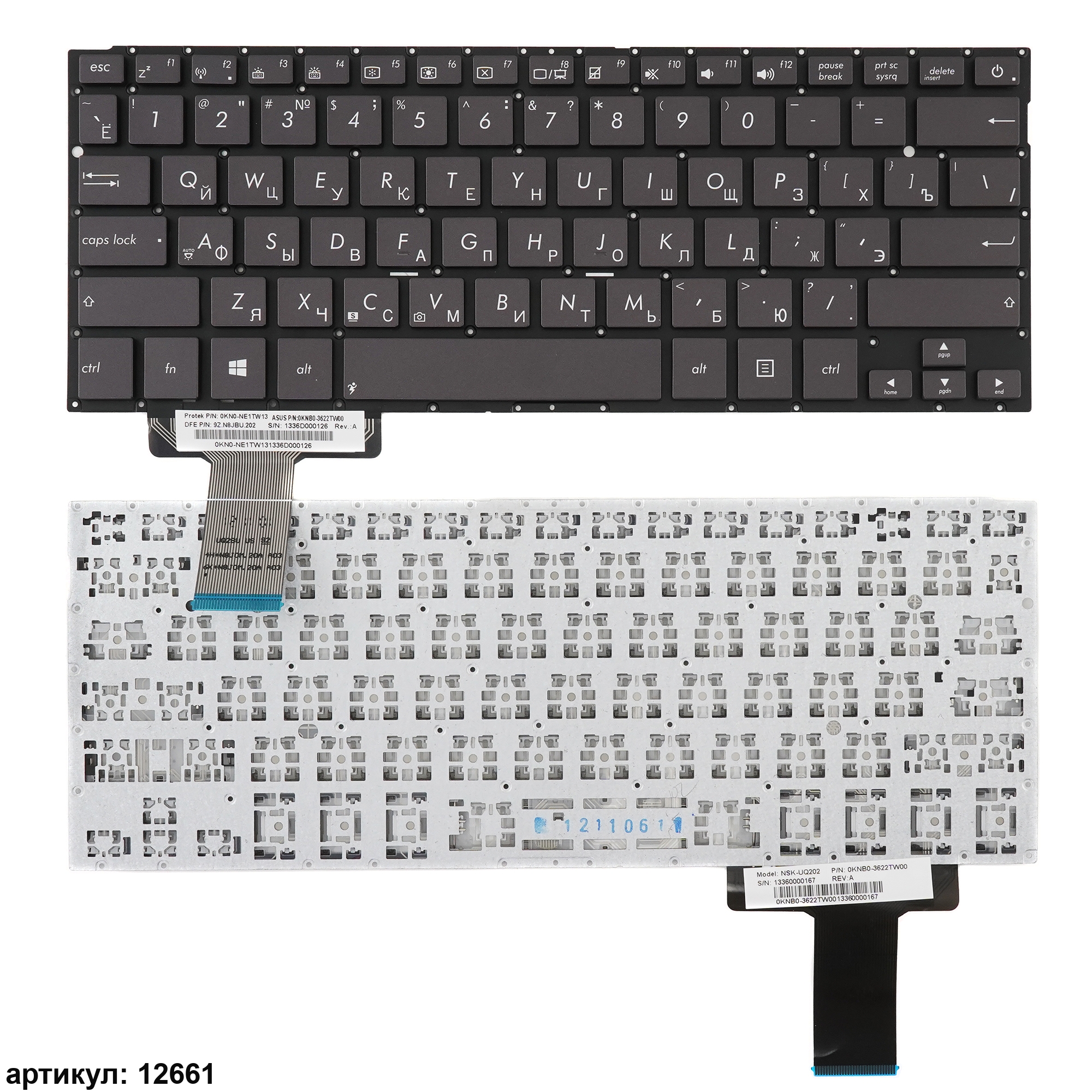 Клавиатура подходит к ноутбукам: Asus UX42, UX42A, UX42LA, UX42LN, UX42VD, UX42VSСовместимые P/n: 0KNB0-3622TW00, NSK-UQ202, 0KN0-NE1TW13, 9Z.N8JBU.202