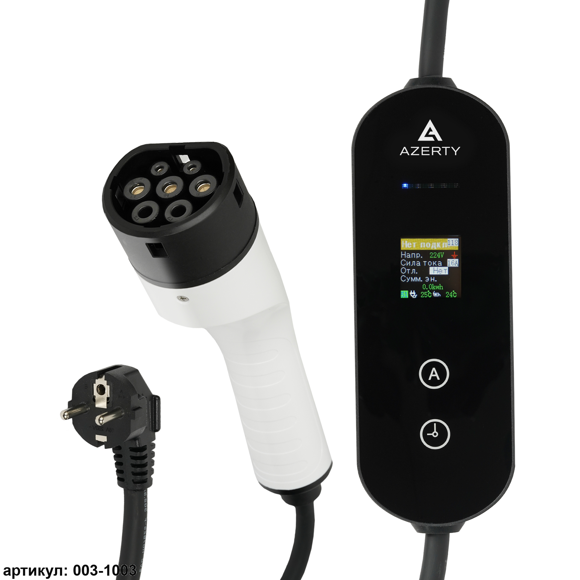 Зарядное устройство для электромобиля. Разъем Type 2 для большинства европейских марок.  Регулируемая сила тока и время заряда. Длина кабеля 7 метров. Сумка для переноски в комплекте. Мы заботимся о вашей безопасности, поэтому зарядное устройство для электромобиля оснащено рядом защитных функций: