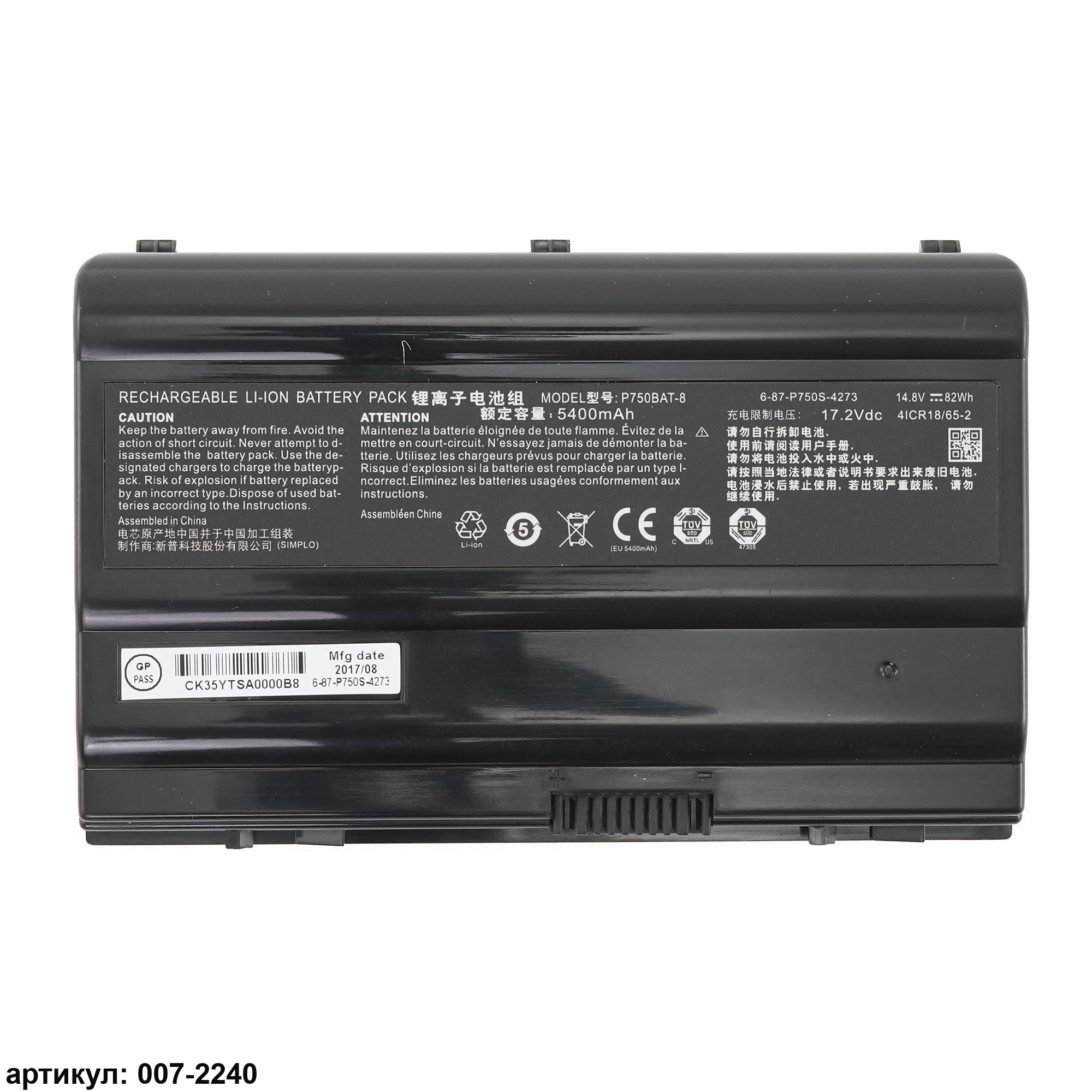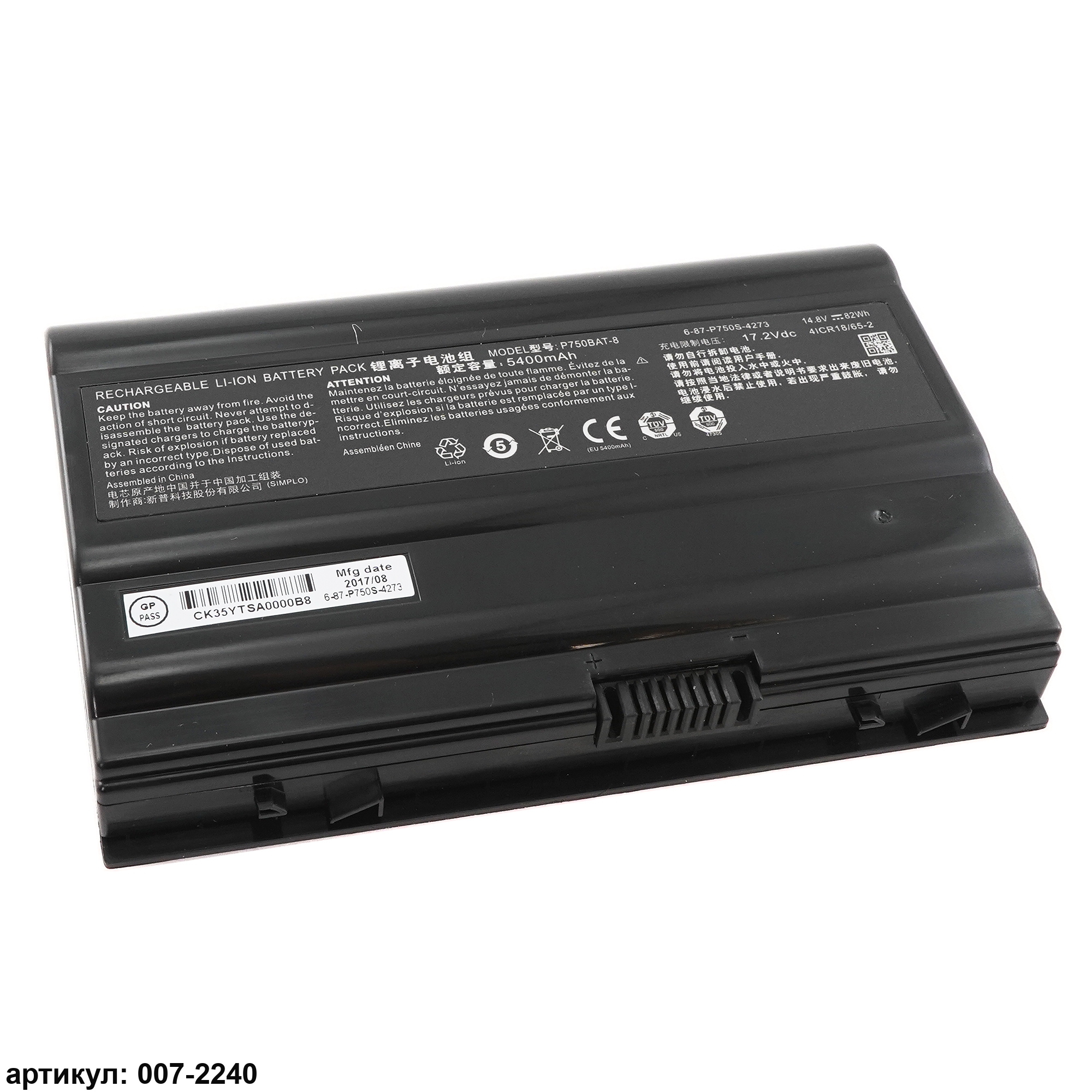 Совместимые P/N: 6-87-P750S-4U73, 6-87-P750S-4271, 6-87-P750S-4272, P750BAT-8
