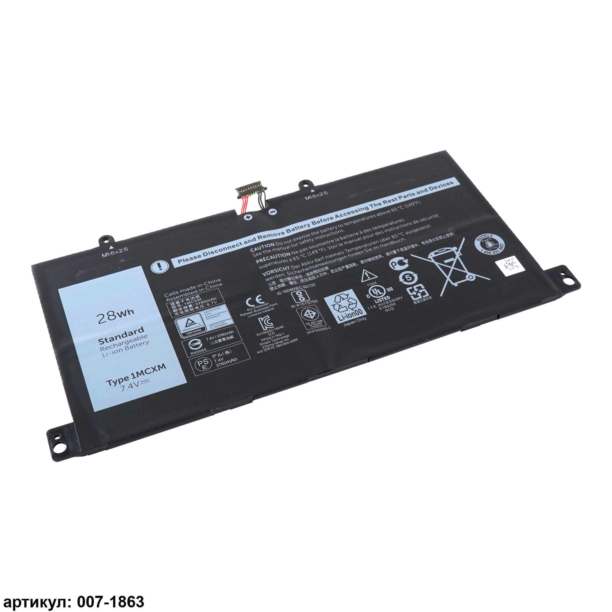 Подходит к сериям ноутбуков: Dell Latitude 11 5175, 5179, E5175, E5179Совместимые P/N: 1MCXM, G3JJT, PKG3N, 0G3JJT