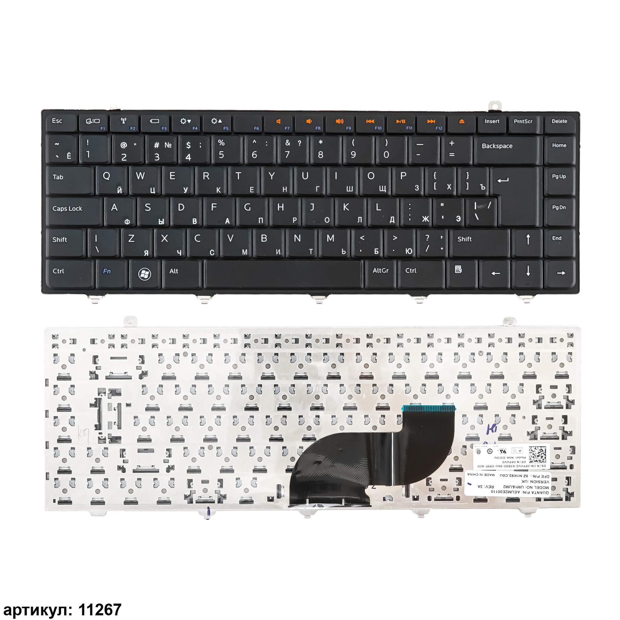 Клавиатура подходит к ноутбукам: Dell Studio 14, Dell Inspiron 1440, 1450, 1457, 1470, 1570, 14ZСовместимые P/n: UM1, UM2, NSK-DJC0R, AEUM2700110, 009XD6, 9Z.N1K82.C01, 9Z.N1K82.C1E, AEUM2U00110, MP-03903US-442, N734M, N737M, NSK-DJ001, NSK-DJ101-1, NSK-DJ11D, NSK-DJC1E, P445M, PK1306I0100, V100846AK1, AEUM2L00010, 07H2PH, TOP-85017, NSK-DJHR, 9Z.N1K82.C0R