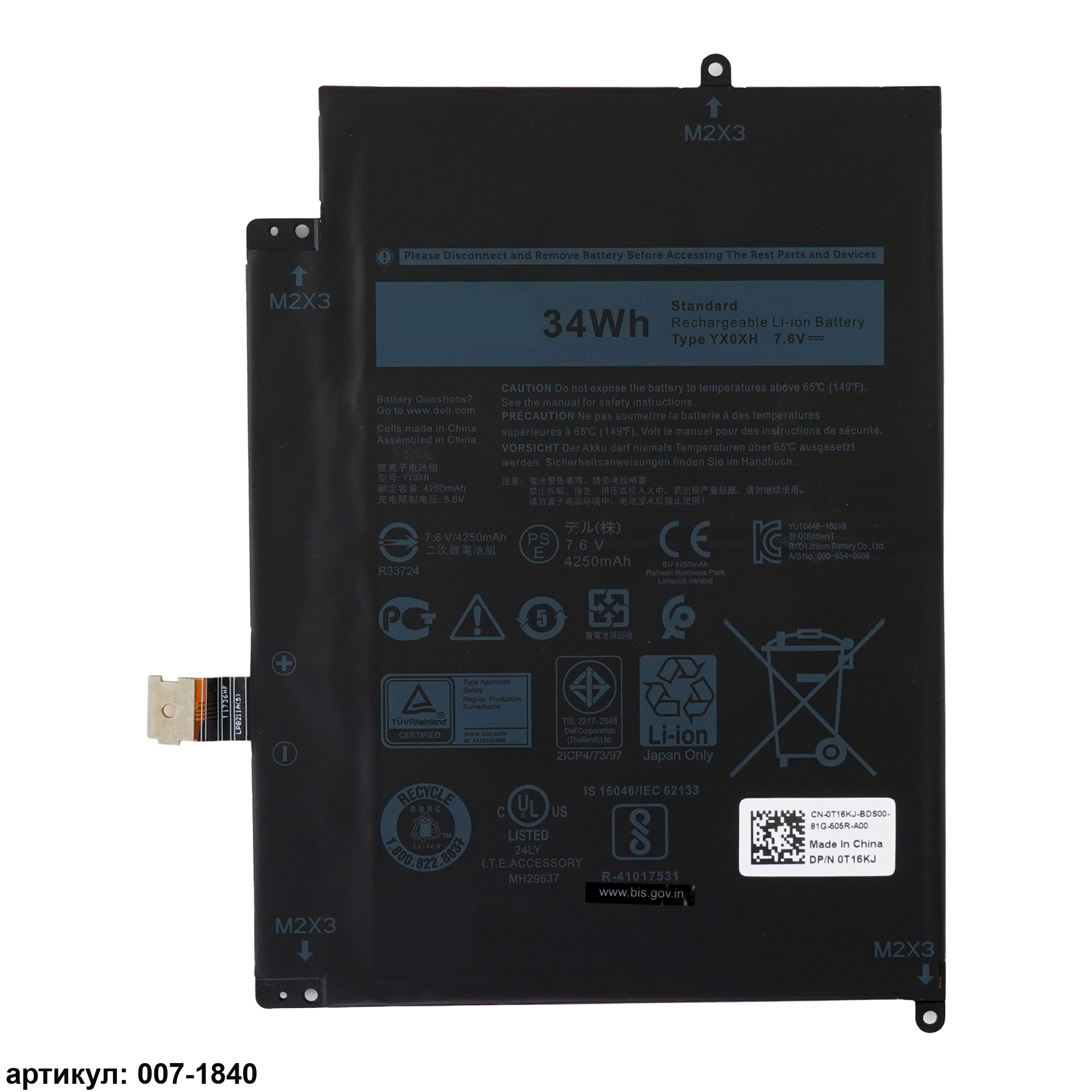 Подходит к сериям ноутбуков: Dell Latitude 7285Совместимые P/N: YX0XH, YXOXH, OWYCVV, 0WYCVV, WYCVV, C668F, 0C668F