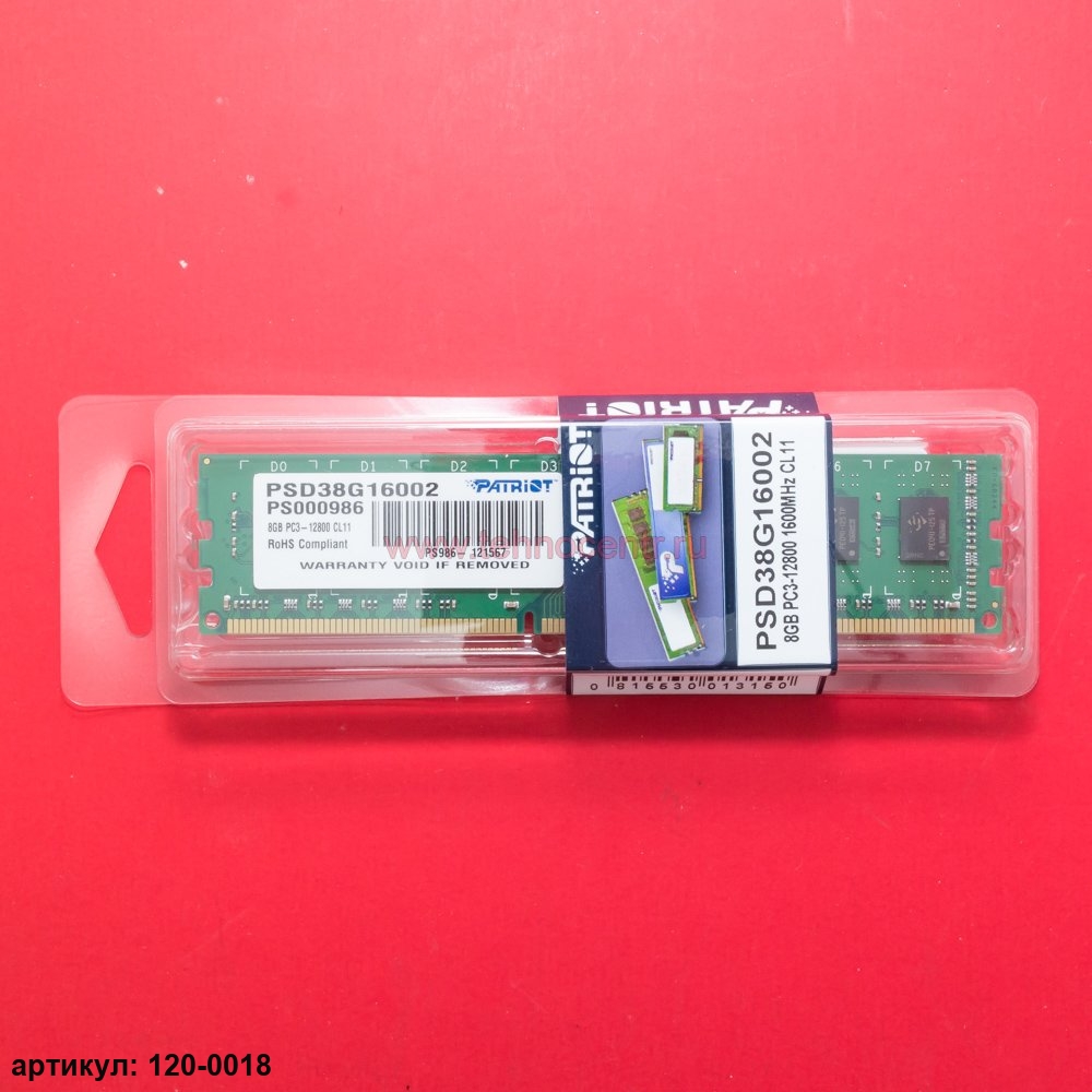 Оперативная память DIMM 8Gb Patriot Memory DDR3 1600