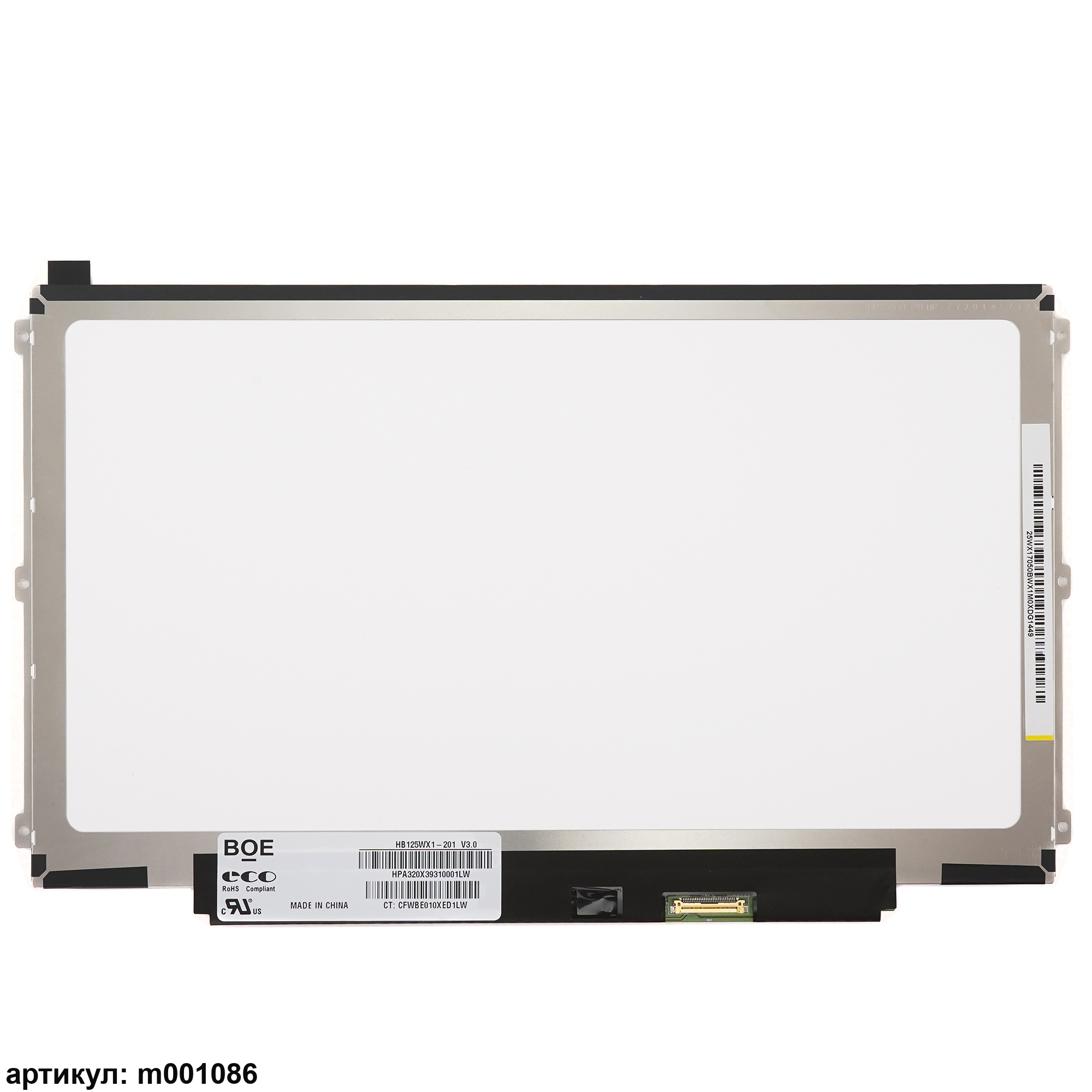Матрица тонкая (Slim), планки расположены по бокам.Разъем подключения расположен справа внизу на внешней плате.Совместимые модели: HB125WX1-201 V3.0, LP125WH2(TP)(P1), LP125WH2(TP)(F1), LP125WH2(TP)(M1), B125XTN01.0 HW:1A/3A FW:1, B125XTN02.0, HB125WX1-100, LP125WH2(TP)(B1)