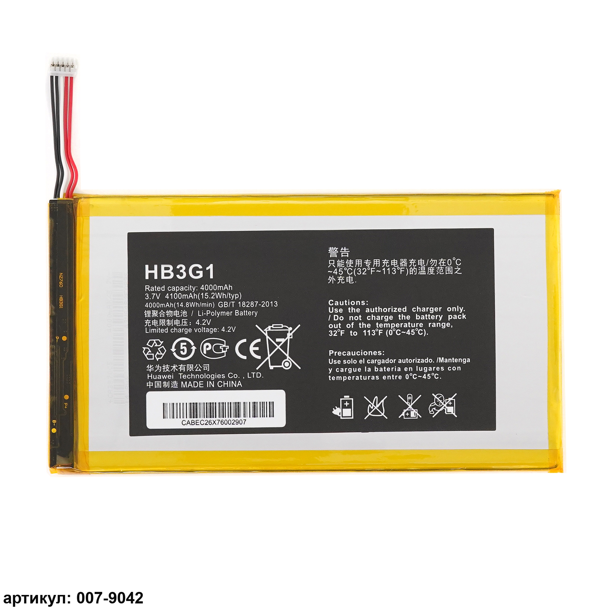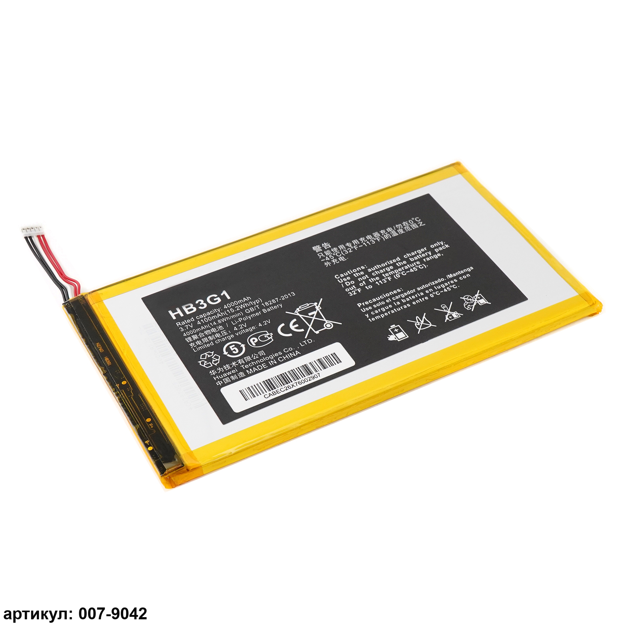 Подходит к планшетам: Huawei MediaPad S7-301U, S7-301W, S7-303U, MediaPad 7 Lite, MediaPad 7 Lite 3G S7-931U, MediaPad 7 Youth 2 S7-721UСовместимые P/n: HB3G1, HB3G1H