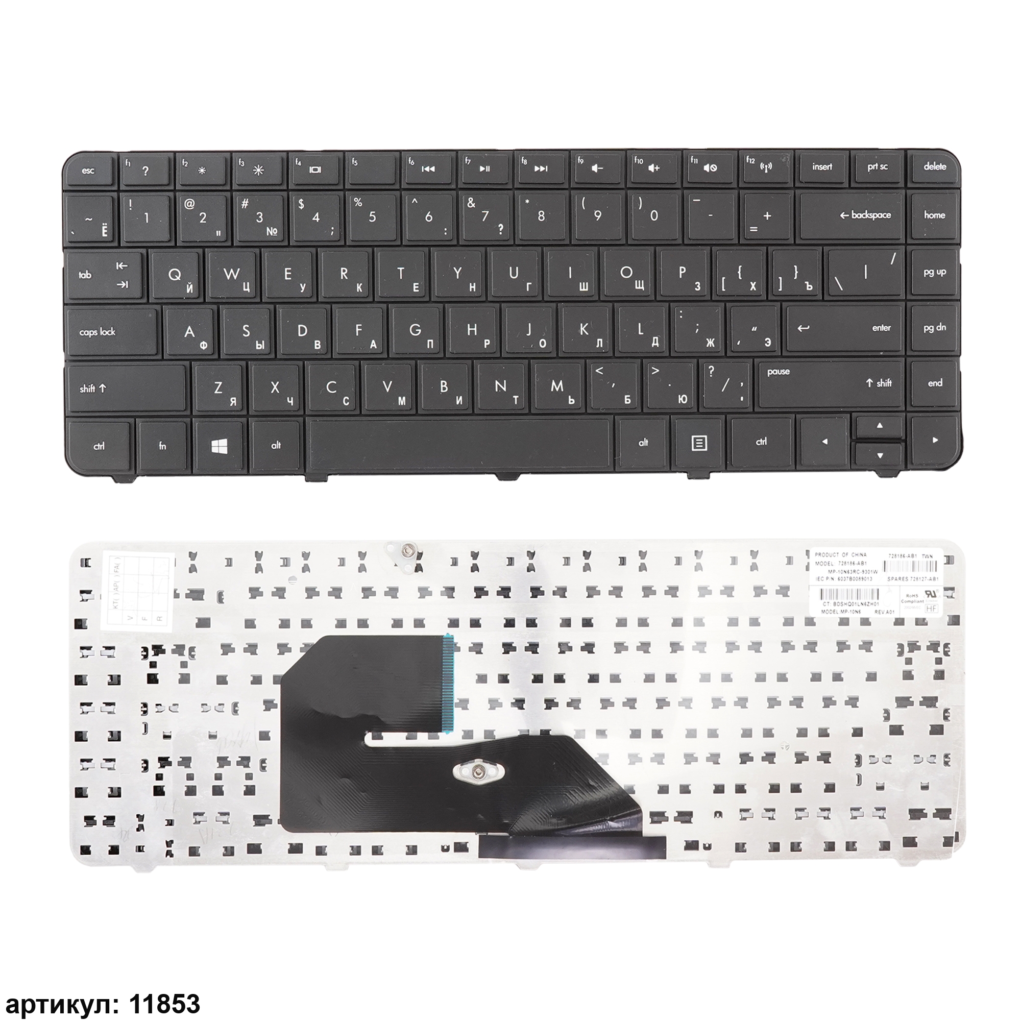 Совместимые P/n: 728127-251, 728186-251, MP-10N63SU-9301W, 6037B0089037, 728127-001, 728186-001, MP-10N63US-9301W, 728186-D61, MP-10N63IN-9301W, 728127-D61