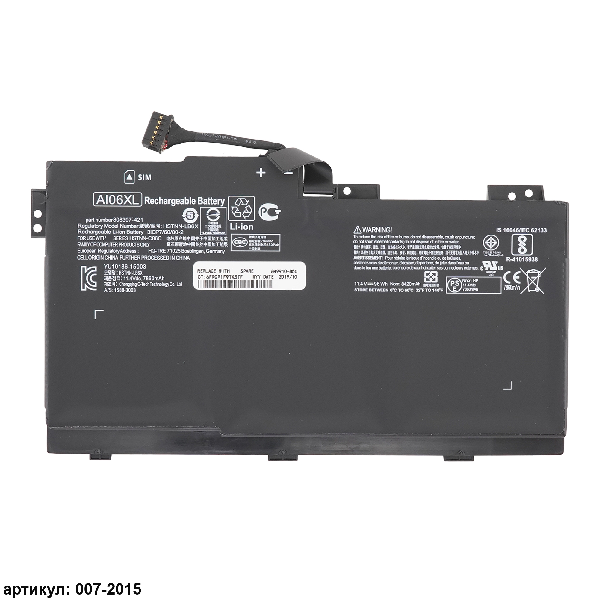 Совместимые P/N: AI06XL, HSTNN-LB6X, HSTNN-C86C, 808397-421, 808451-001, 808451-002, AI06096XL