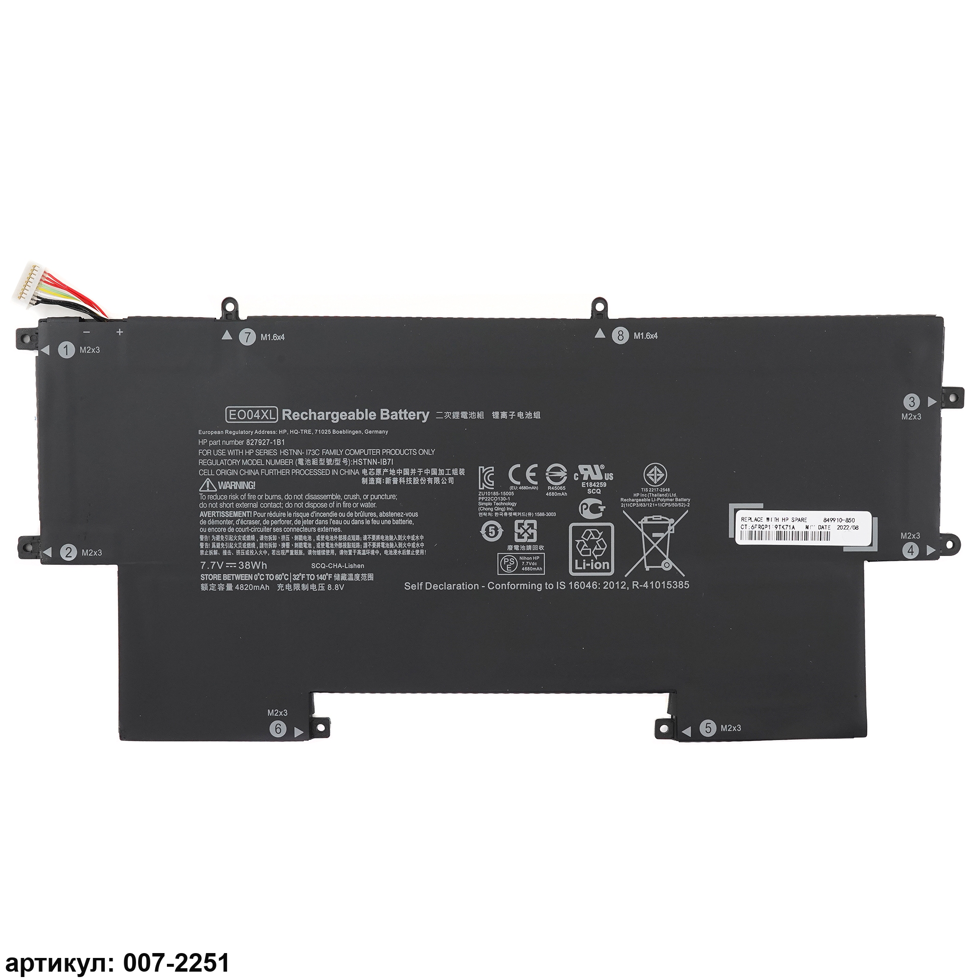 Совместимые P/N: 827927-1B1, 827927-1C1, 828226-005, EO04XL, HSTNN-I73C, HSTNN-IB71