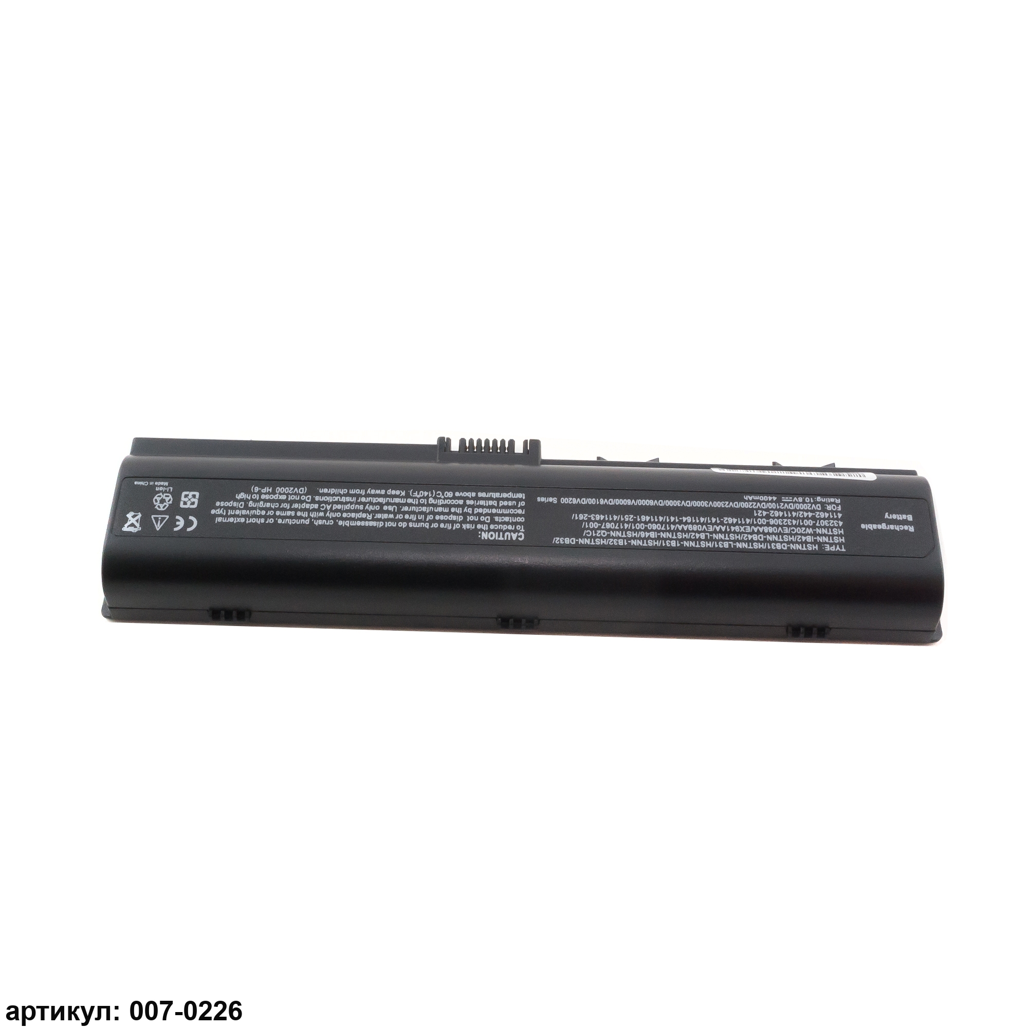 Совместимые P/N: 11462-141, 411462-251, 411462-261, 411462-321, 411462-361, 411462-421, 411462-442, 411463-141, 411463-161, 411463-251, 411463-261, 411464-141, 417066-001, 417067-001, 432306-001, 432307-001, 436281-131, 436281-141, 436281-241, 436281-251, 436281-361, 436281-421, 436281-422, 440772-001, 441243-141, 441425-001, 441462-251, 441611-001, 446506-001, 446507-001, 451864-001, 452056-001, 452057-001, 454931-001, 455804-001, 455806-001, 460143-001, 462337-001, 462853-001, 466506-001, 491167-001, EV088AA, EV089AA, EX940AA, EX941AA, HSTNN-C17C, HSTNN-DB31, HSTNN-DB32, HSTNN-DB42, HSTNN-DB46, HSTNN-IB31, HSTNN-IB32, HSTNN-IB42, HSTNN-IB46, HSTNN-LB31, HSTNN-LB42, HSTNN-OB31, HSTNN-OB42, HSTNN-Q21C, HSTNN-Q33C, HSTNN-UB42, HSTNN-W20C, HSTNN-W34C, HSTNN-W40C, VE06, VE12
