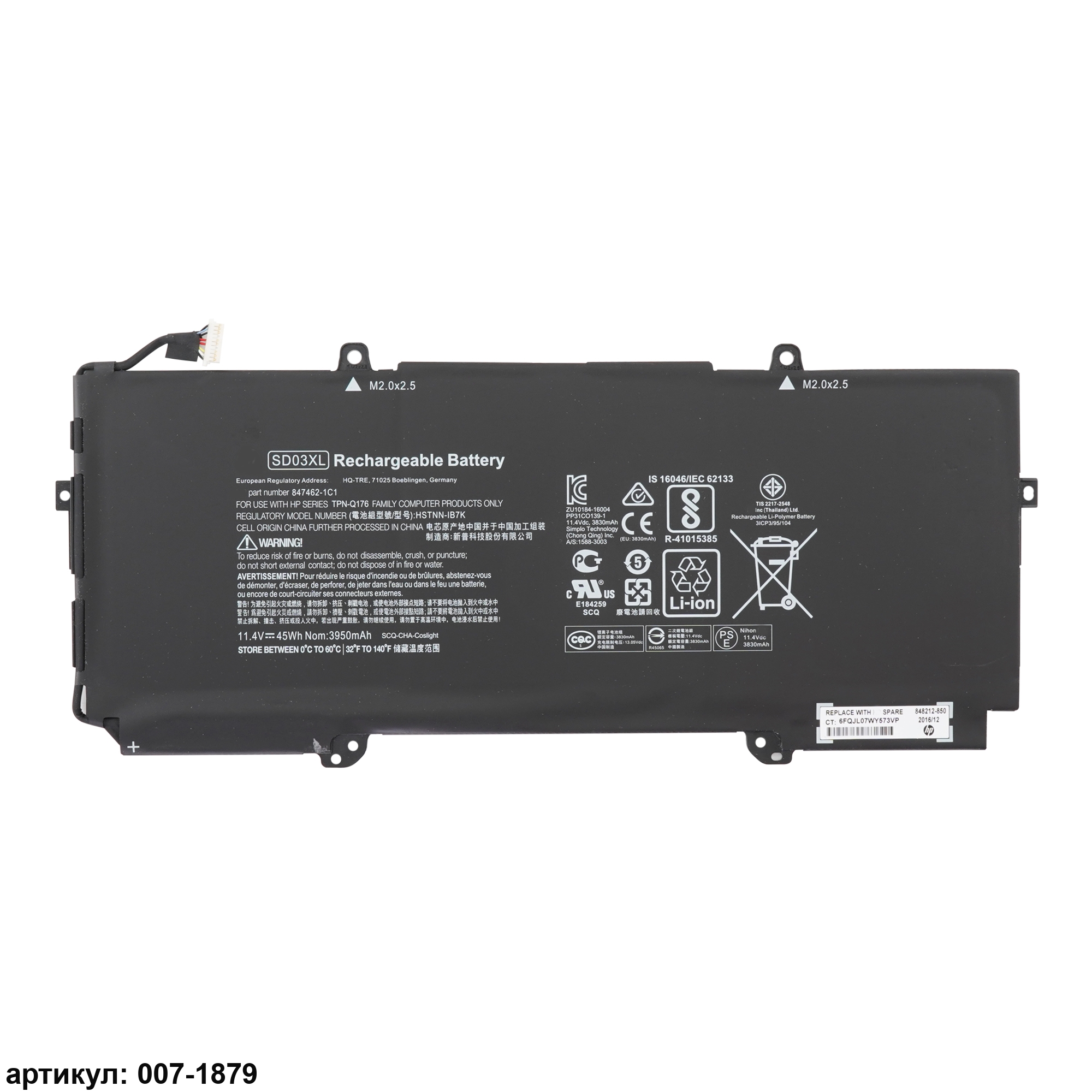Совместимые P/N: 848212-850, 847462-1C1, HSTNN-IB7K, TPN-Q176, SDO3XL