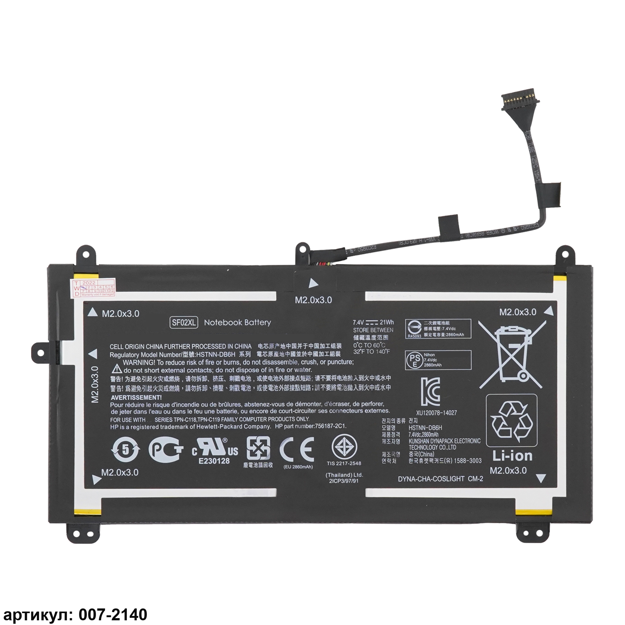 Совместимые P/N: HSTNN-DB6H, SF02XL