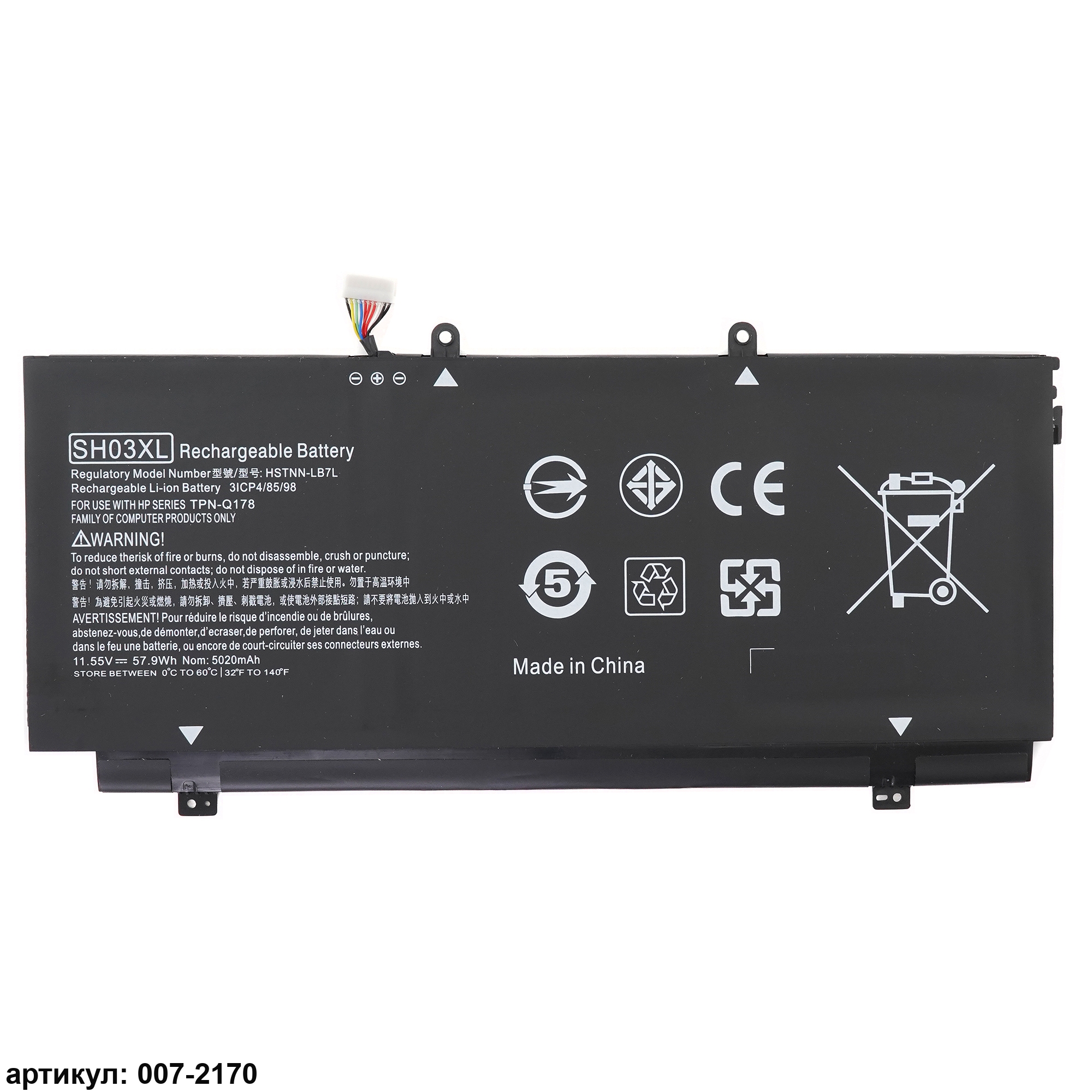 Совместимые P/N: 859026-421, 859356-855, HSTNN-LB7L, SH03XL, TPN-Q178, CN03XL, 901308-421, 901345-855, 3ICP4/85/98, CN03057XL