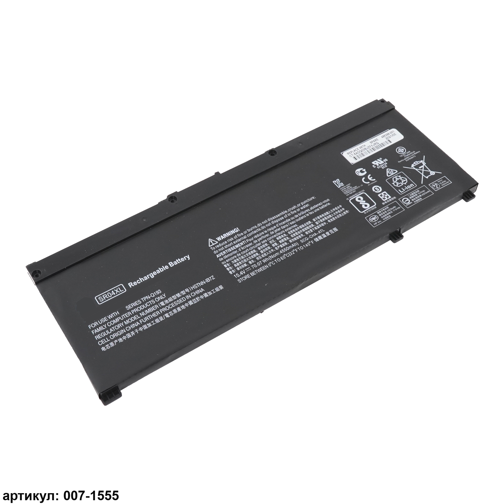 Подходит к сериям ноутбуков: HP Omen 15-DC, 15-CE, 15-CE000, Pavilion Power 15T-CB, 15T-CB2000Совместимые P/N: SR04XL, 917678-1B1, 917724-855, TPN-Q193, HSTNN-IB7Z