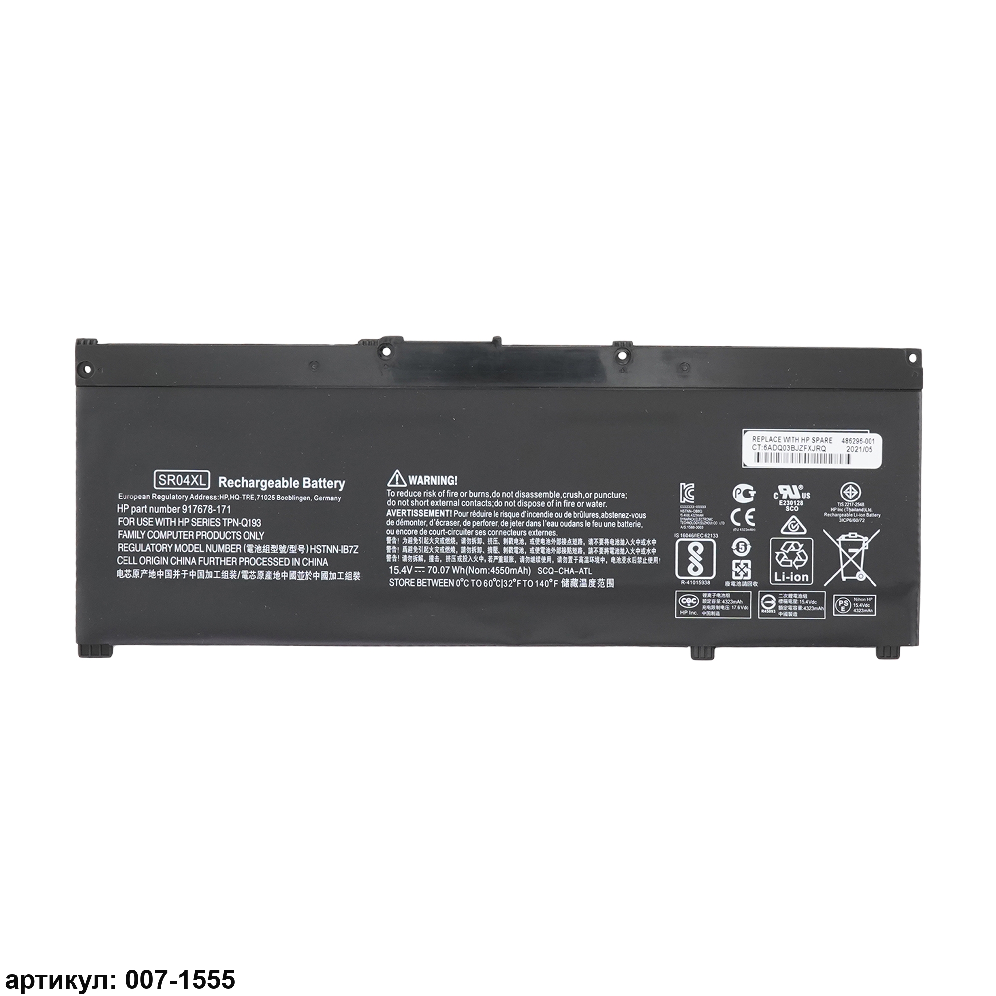 Совместимые P/N: SR04XL, 917678-1B1, 917724-855, TPN-Q193, HSTNN-IB7Z