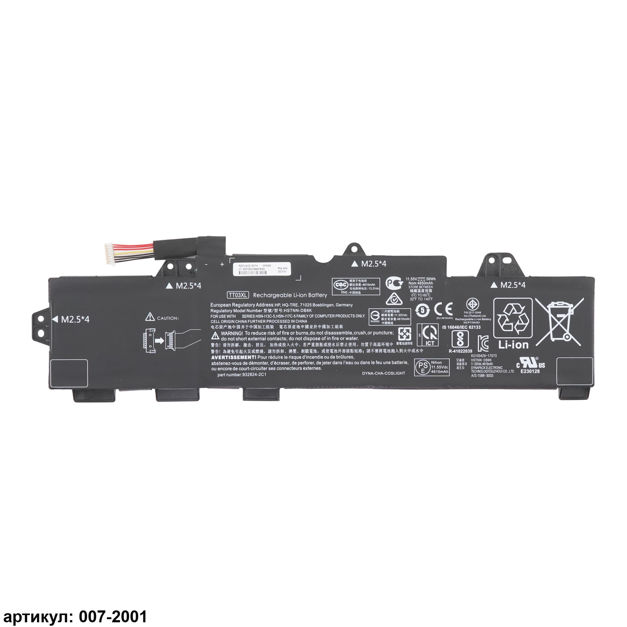 Совместимые P/N: TT03XL, 933322-855, HSTNN-DB8K, 932824-2C1, 3RS08UT#ABA, 932824-1C1, 932824-421, HSN-I13C-5, HSN-I17C-5, HSTNN-LB8H, TT03056XL