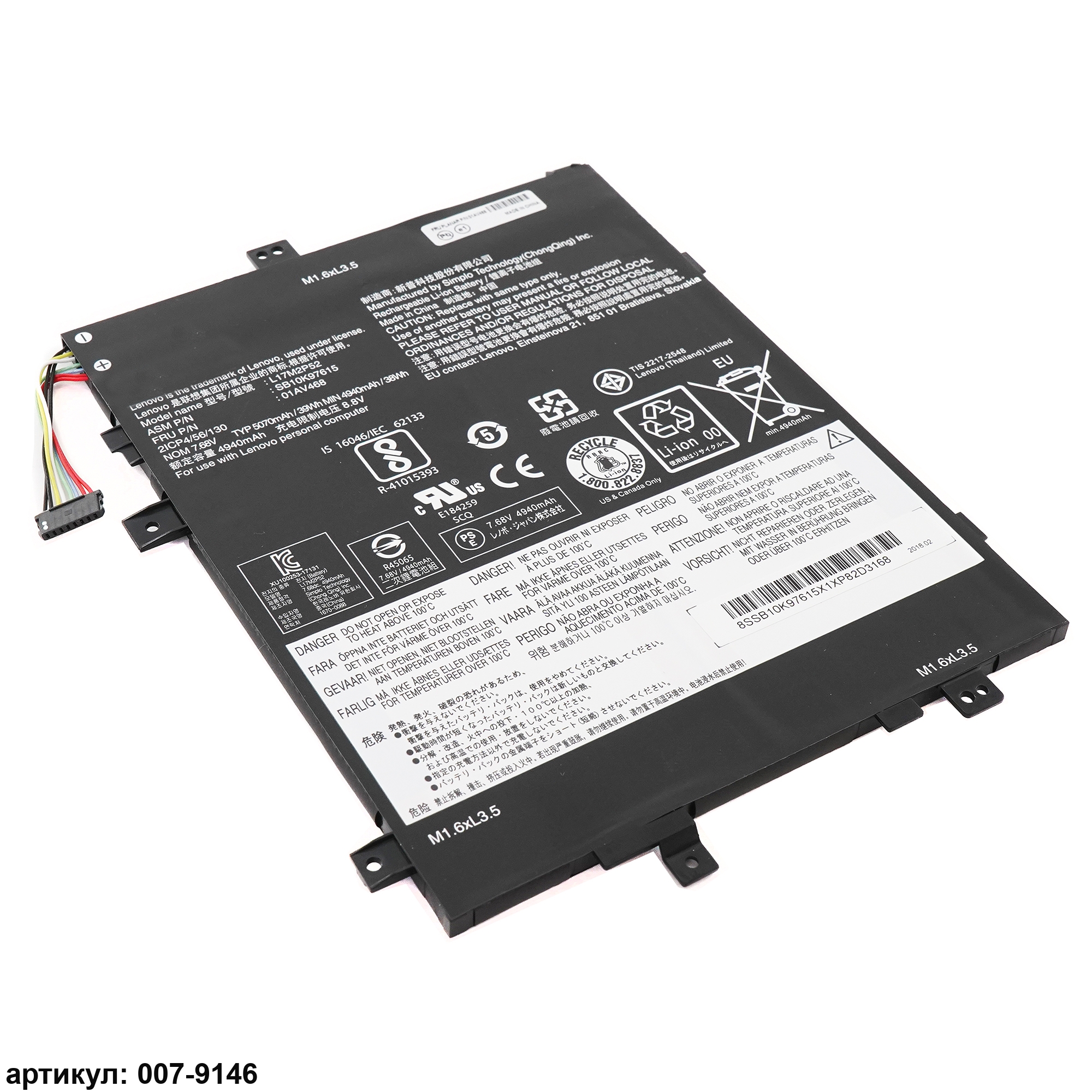Совместимые P/n: L17M2P52, 01AV468, SB10K97615, 5B10W13915, 5B10W13916, 5B10W13917, 01AV469, 01AV467