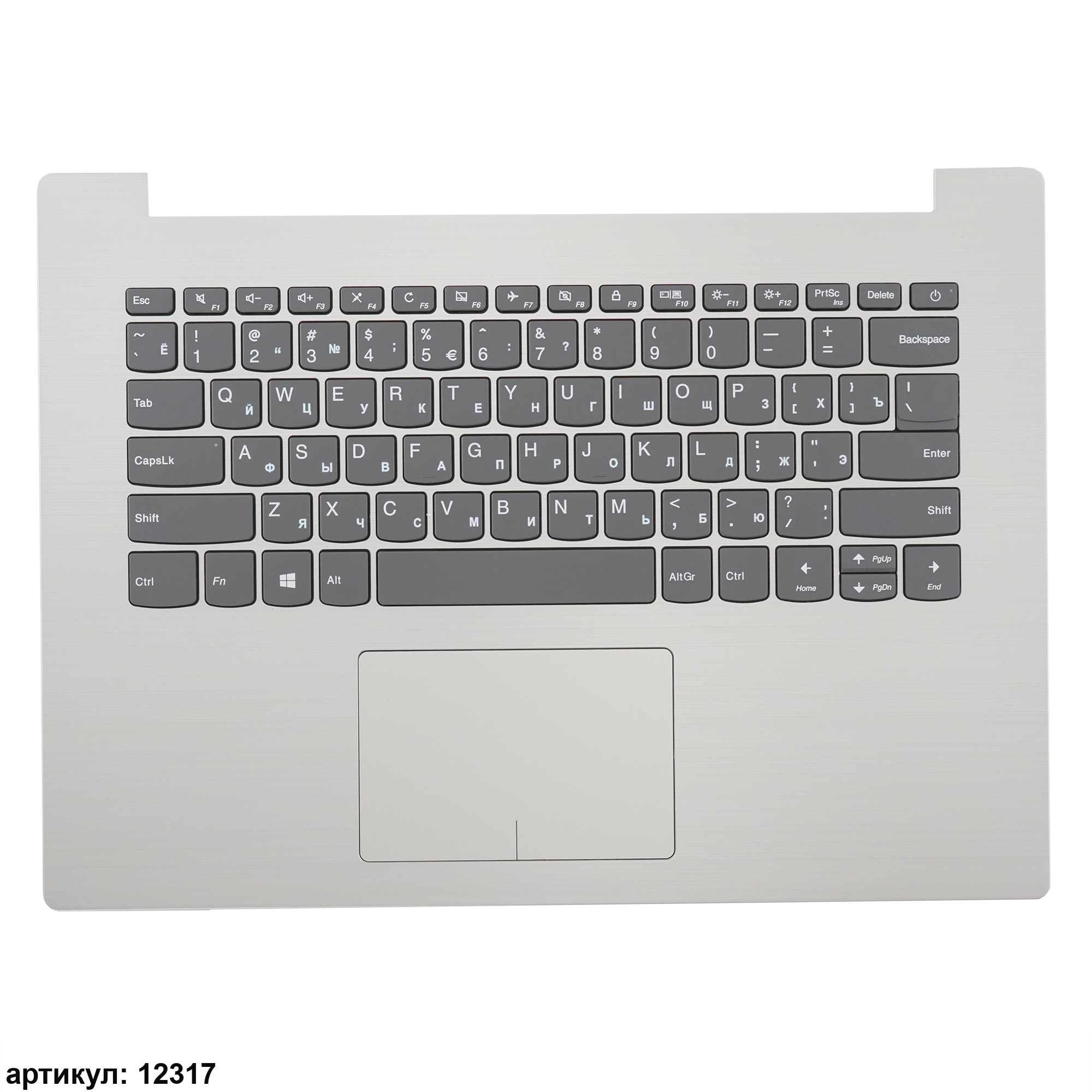 Клавиатура для ноутбука Lenovo 330-14IGM серая c серебристым топкейсом
