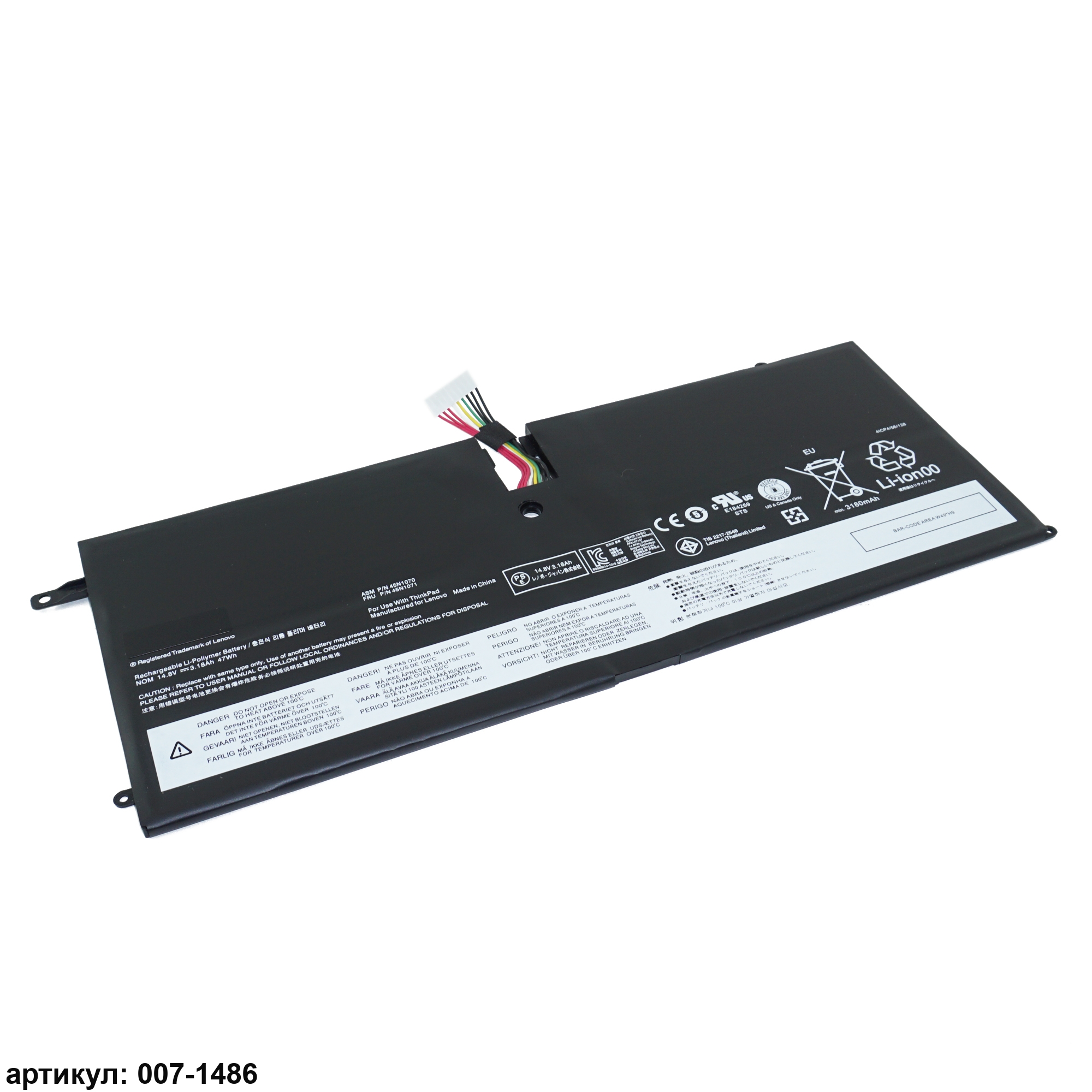 Подходит к сериям ноутбуков: Lenovo ThinkPad X1 Carbon 1st Gen (3443, 3444, 3448, 3460, 3462, 3463)Совместимые P/N: 45N1070, 45N1071, 4ICP4/51/95