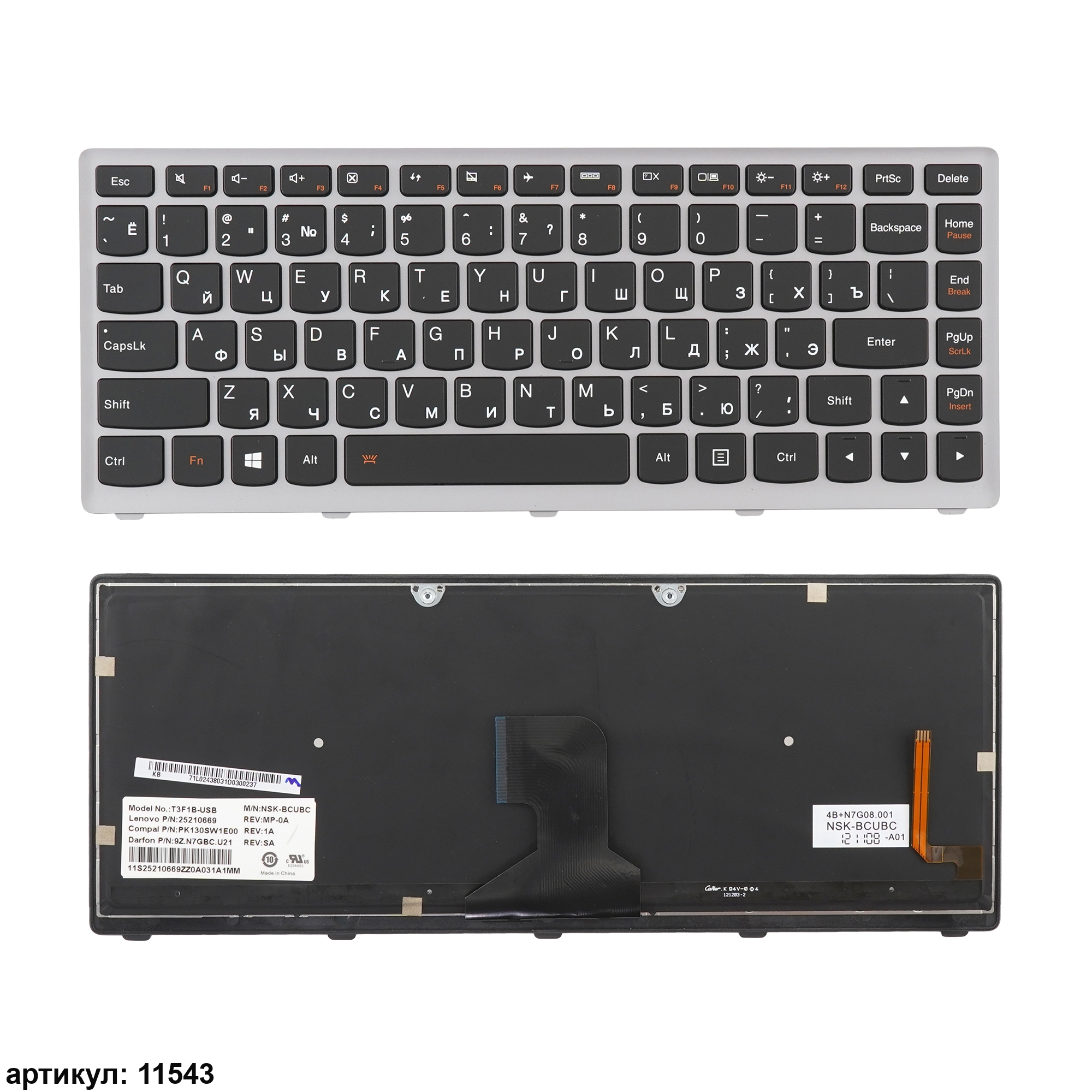 Клавиатура подходит к ноутбукам: Lenovo IdeaPad Z400, Z400A, Z400N, Z400P, Z400TСовместимые P/n: 25-206100, 25206100, T3F1-RU, T3F1B-RU, NSK-BCUBC, NSK- BCRSC, 9Z.N7GBC.U0R, 9Z.N7GSC.R0R, PK130SW1B05, 25-205909, 25-206089, 25-206090, 25205909, 25206089, 25206090, T3F1-US, T3F1B-US, 9Z.N7GBC.U01, 9Z.N7GSC.R01, PK130SW1B00, PK130SW1D00