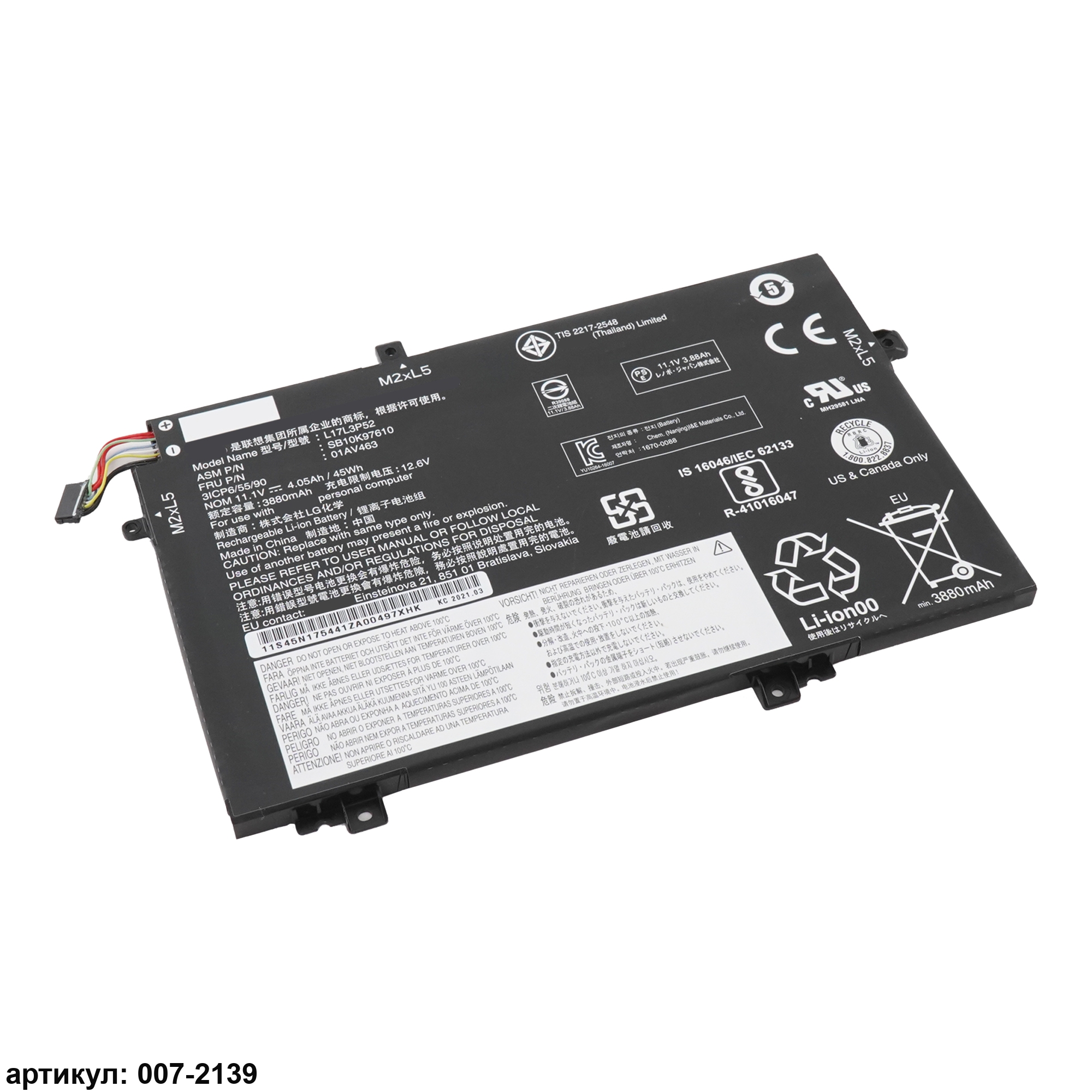 Подходит к сериям ноутбуков: Lenovo ThinkPad L480, L580, L490, L590, L14, L15, L14 Gen 2, L15 Gen 2