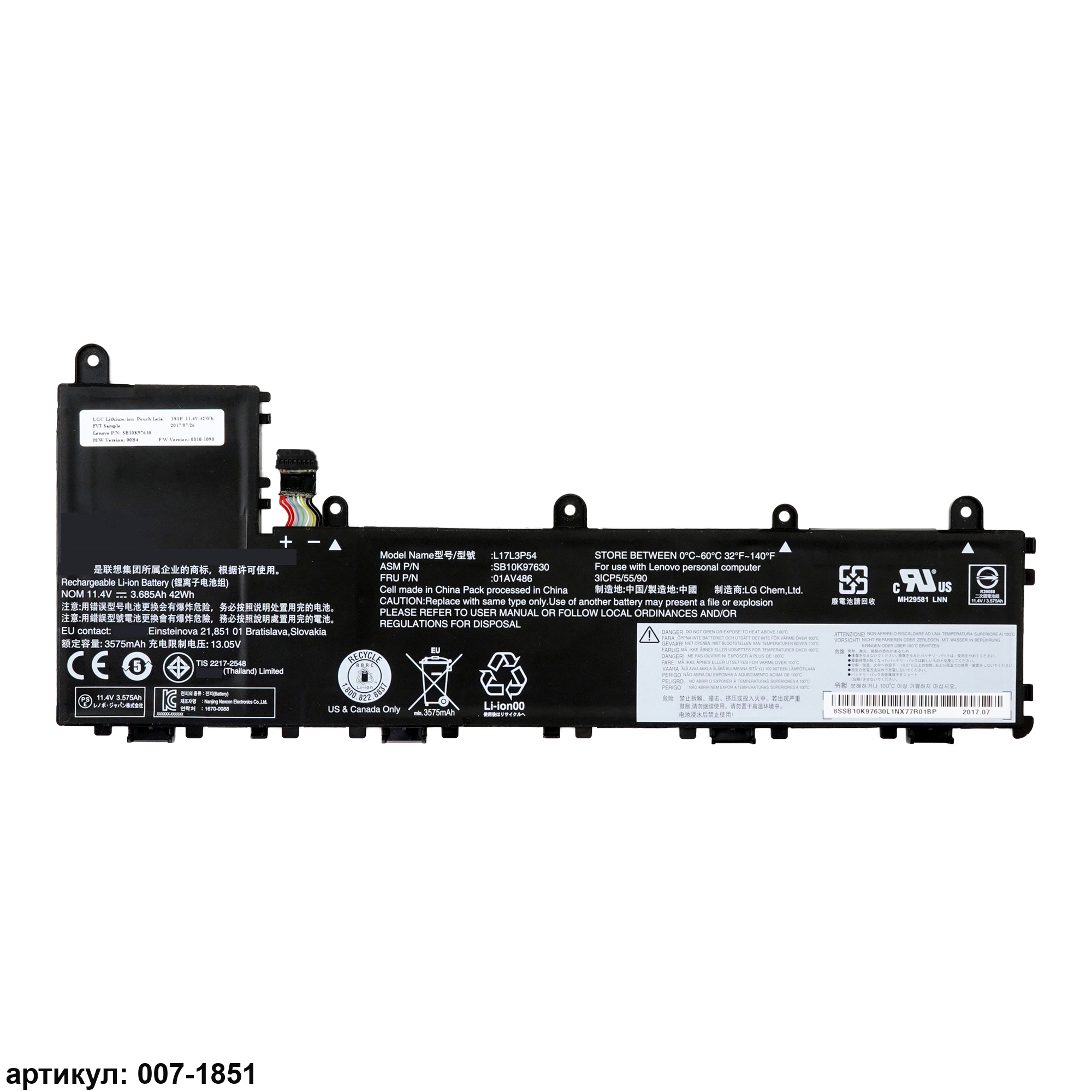 Совместимые P/N: L17M3P56, L17L3P54, 01AV486, 01AV487, SB10K97630, SB10K97631