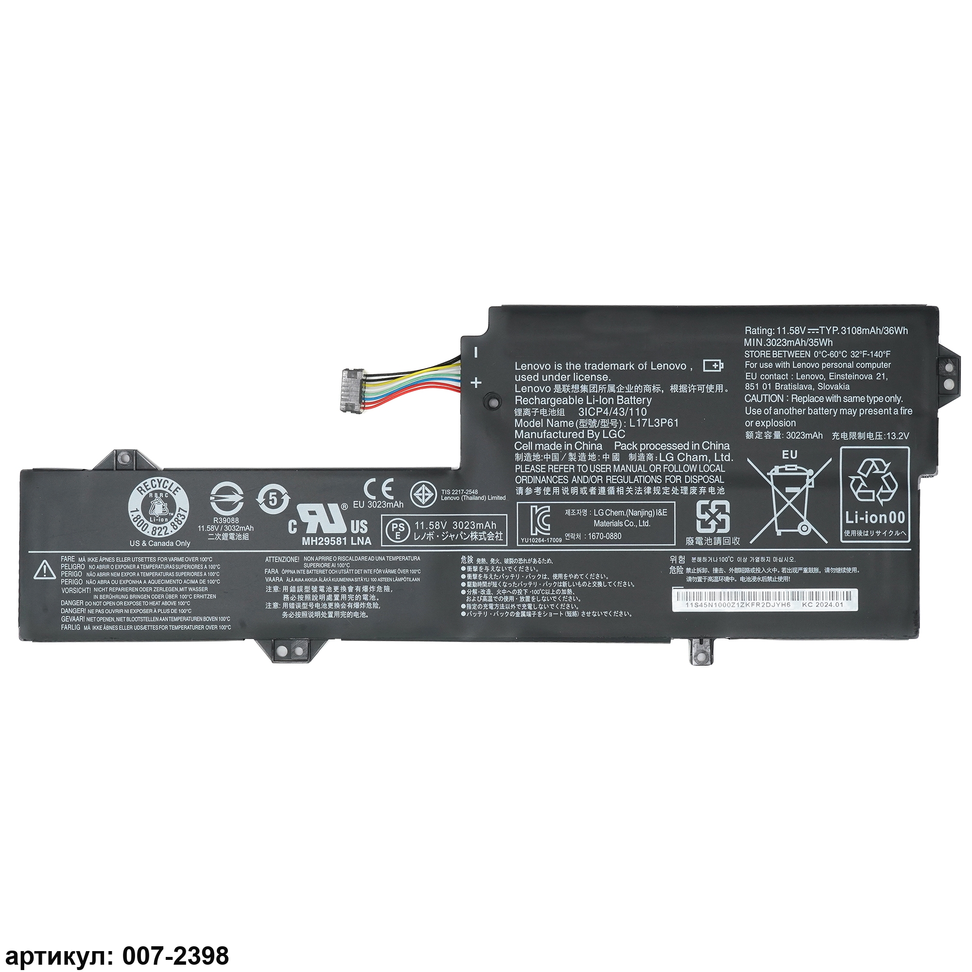 Совместимые P/N: L17C3P61, L17L3P61, L17M3P61, 5B10N87359, 5B10N87357, 5B10N87358