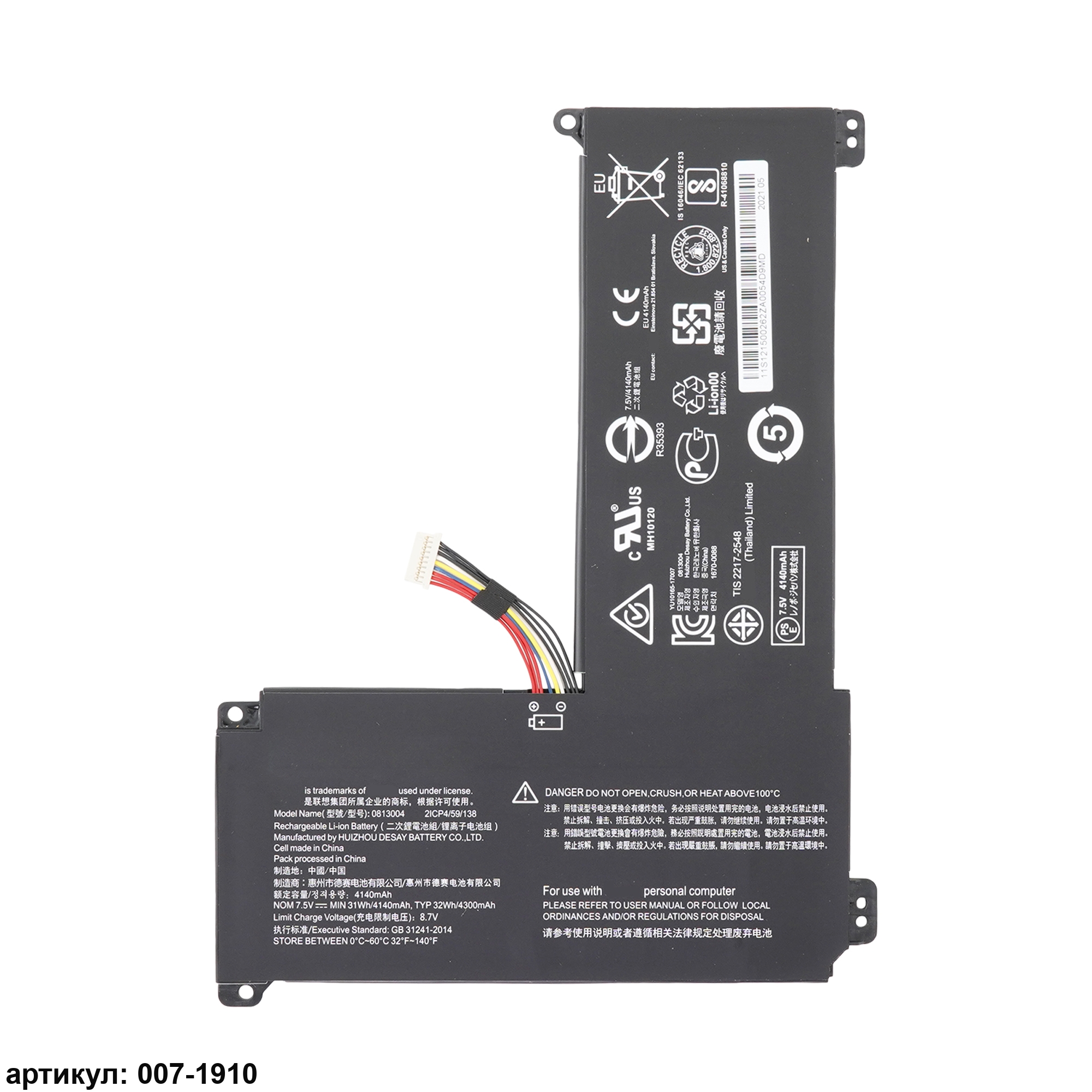 Подходит к сериям ноутбуков: Lenovo IdeaPad 110S, 110S-11IBR, 120S-14IAP