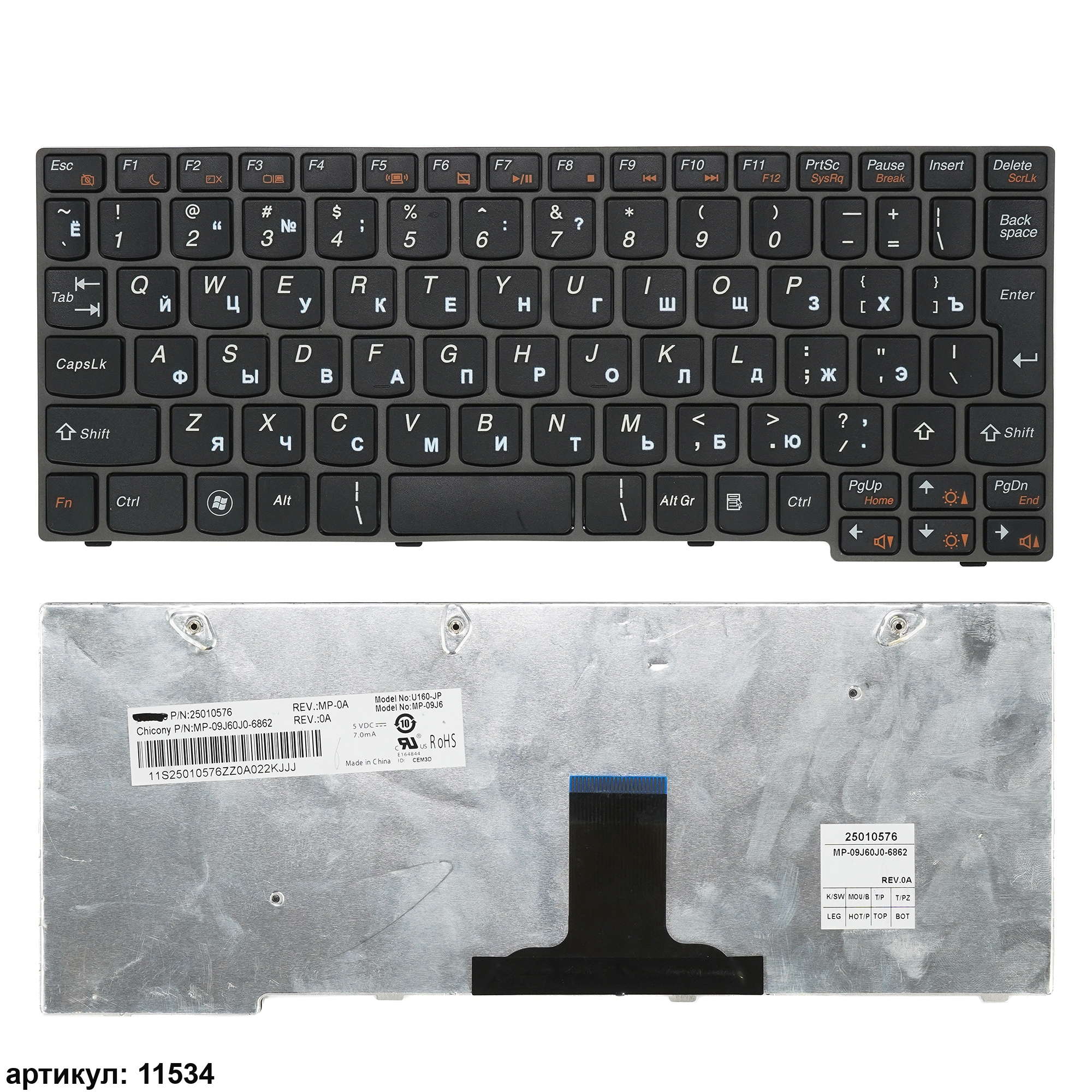 Клавиатура подходит к ноутбукам: Lenovo IdeaPad U160, U165, также совместима с Lenovo IdeaPad S10-3, но для установки необходимо демонтировать стойки крепления под винтыСовместимые P/n: 25-010581, 25-010625, 25010581, 25010625, U160-RU, T1SU-RUS, KFRTBD157A, MP-09J63SU-6862, MP-09J63SU-6866, 25201040, MP-09J63US-6866, MP-09J6