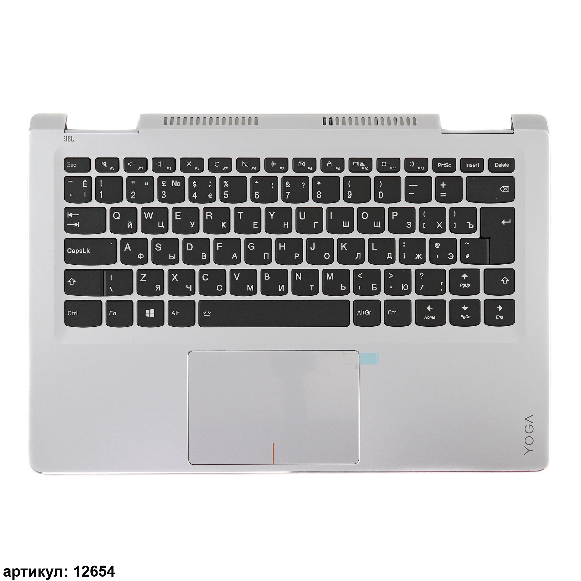 Клавиатура для ноутбука Lenovo Yoga 710-14ISK чёрная с серебристым топкейсом