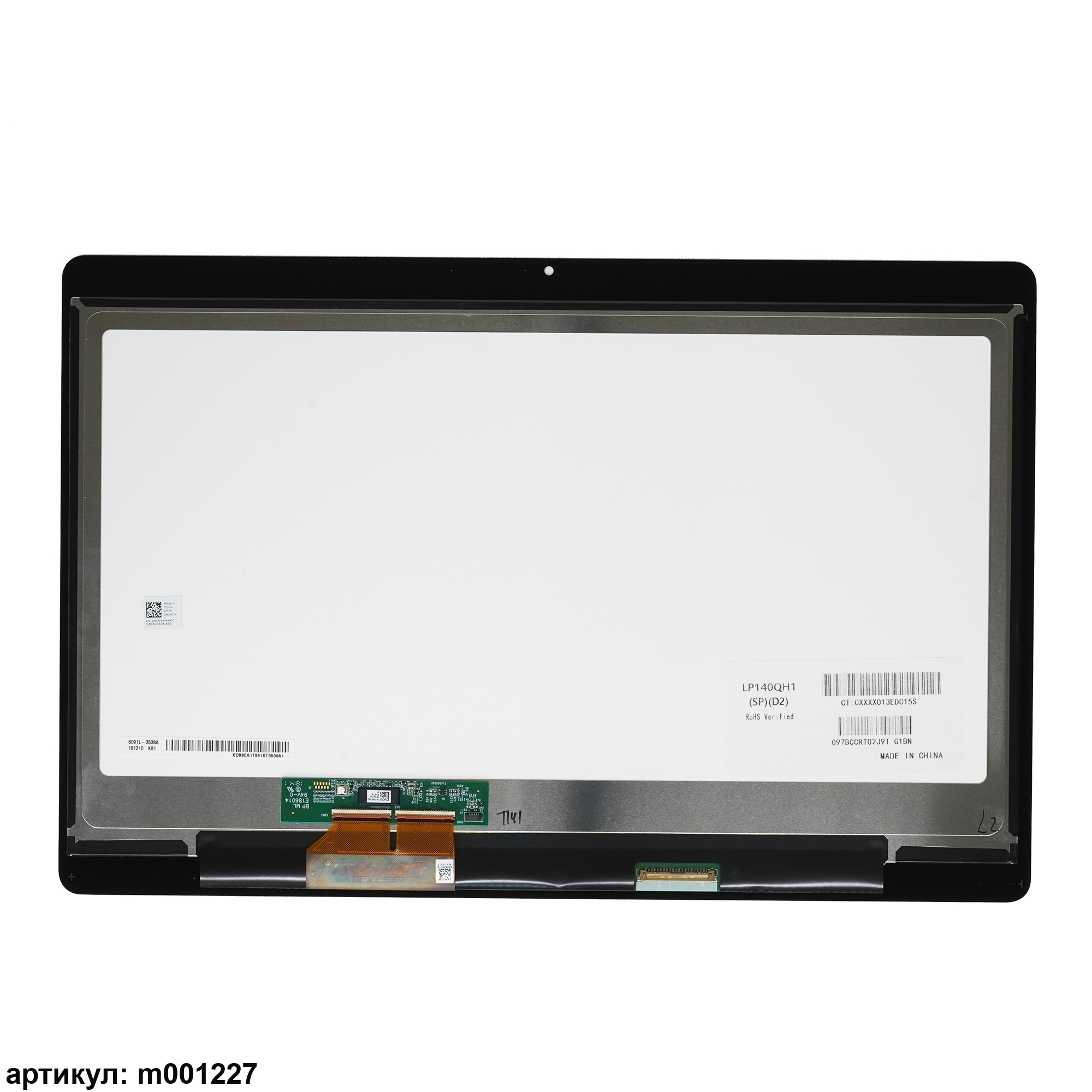 Матрица тонкая (Slim), с тачскрином.Разъем подключения расположен справа внизу на внешней плате.Совместимые модели: LP140QH1 (SP)(D2), B140QAN01.0
