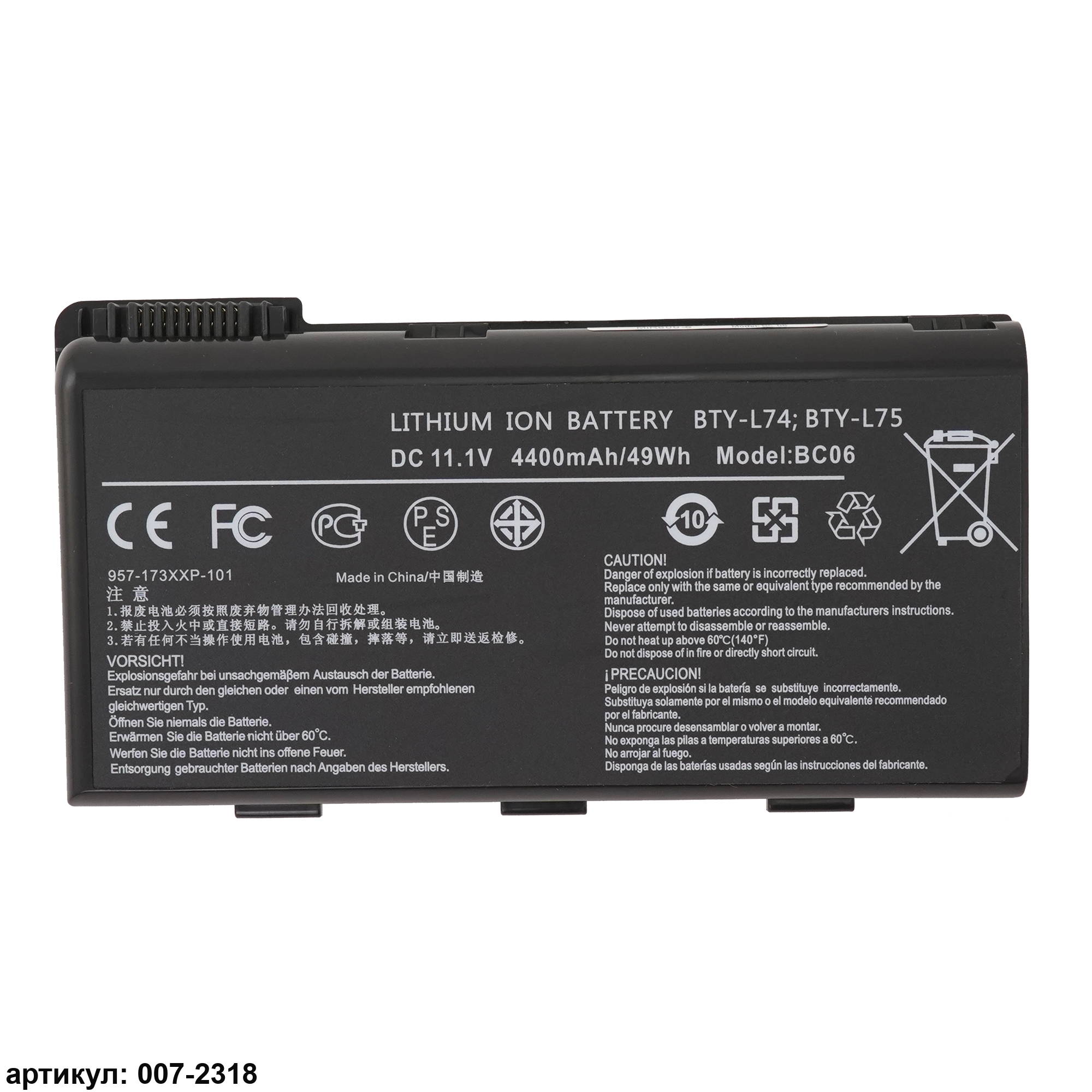 Совместимые P/N: BTY-L74, BTY-L75, MS-1682, 91NMS17LD4SU1, 91NMS17LF6SU1, 957-173XXP-101, 957-173XXP-102, S9N-2062210-M47