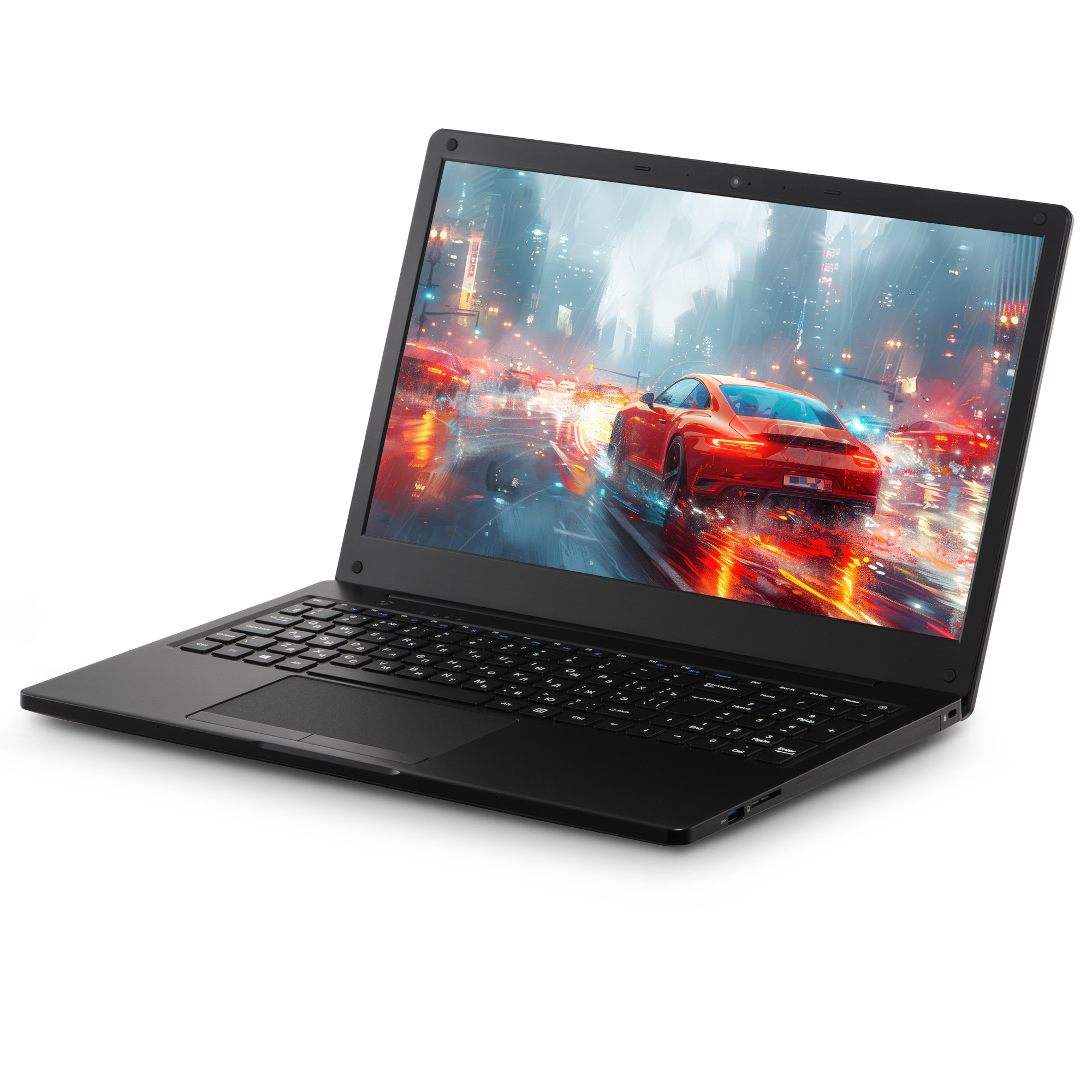 15,6-дюймовая матрица с разрешением 1920×1080 формирует чёткое и детализированное изображение. Технология IPS обеспечивает достоверность цветопередачи и широкие углы обзора — «картинка» остаётся насыщенной и контрастной независимо от положения экрана. Full HD-разрешение оптимально для офисных задач – удобно работать с документами, таблицами, презентациями и веб-контентом, не сталкиваясь с нехваткой пространства на дисплее. Такой формат делает ноутбук универсальным, пригодным и для повседневной работы, и для мультимедиа.