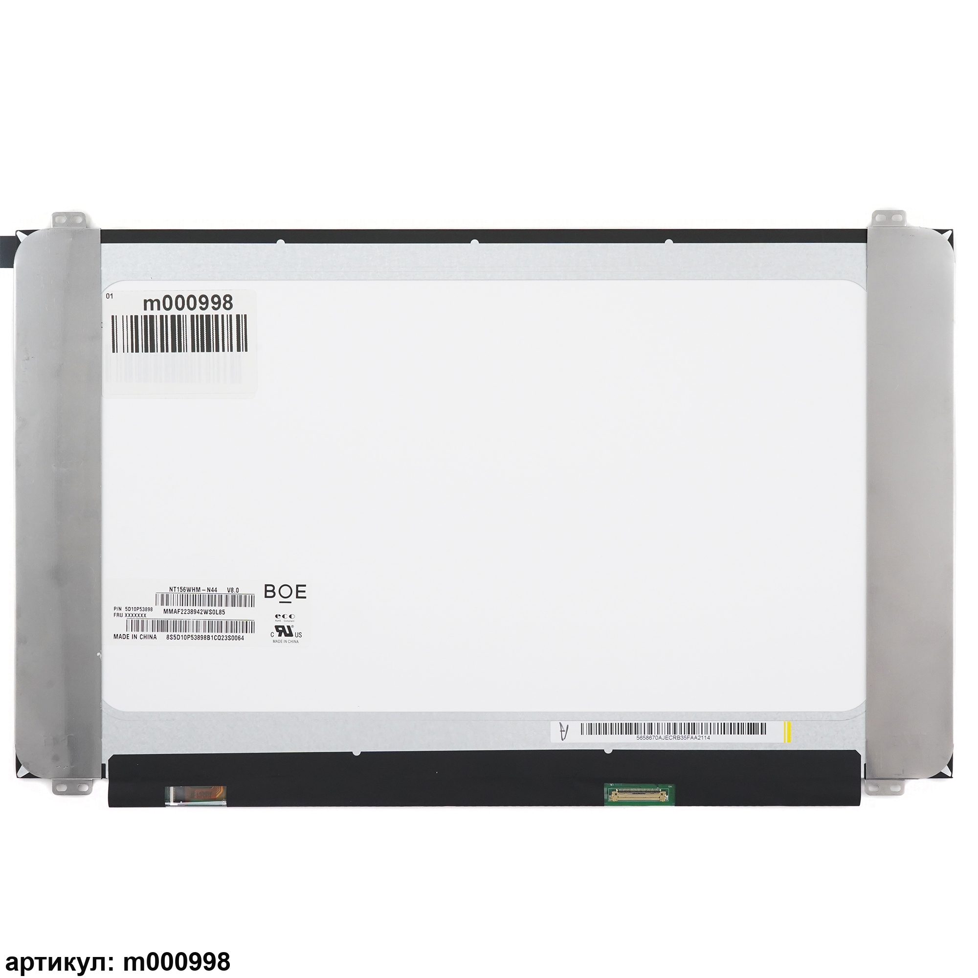 Матрица стандарт (Slim), приклеенные уши вверх/вниз.Разъем подключения расположен справа внизу на внешней плате.Совместимые модели: NT156WHM-N44, N156BGA-EA3 Rev.C3, N156BGA-EA3 Rev.C2, NT156WHM-N34, N156BGA-EB3, NT156WHM-N49, NT156WHM-N30, NT156WHM-N40, B156XTN08.0, B156XTN08.1, MB156AN01-3, NT156WHM-N35, NT156WHM-N44 V8.0, NT156WHM-N48