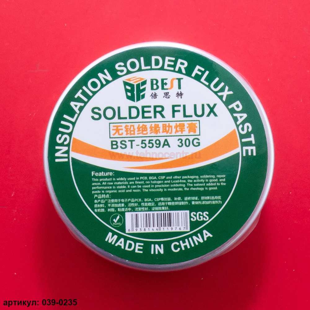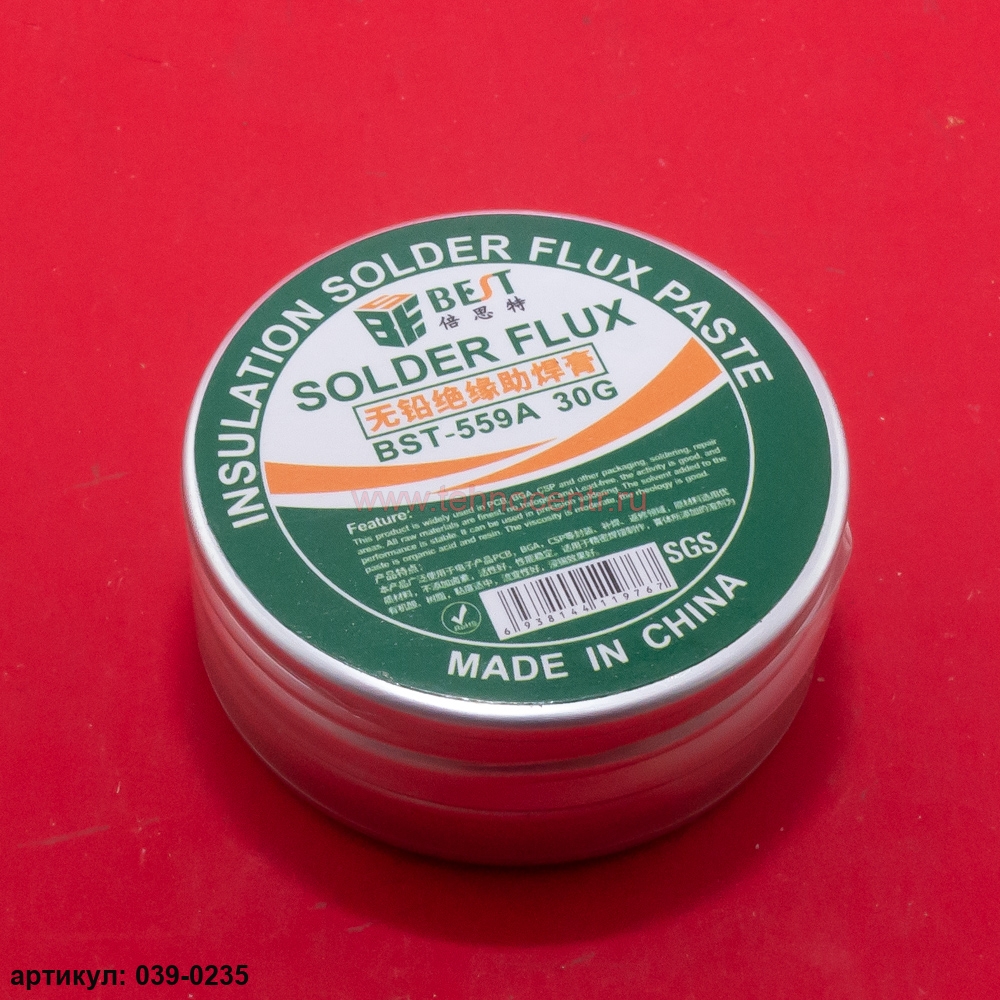 Бессвинцовая паяльная паста Best BST-559A (30гр)Бессвинцовый, безгалогеновый, нерезистивный и непроводящий. Подходит для упаковки печатных плат, BGA, CSP, сварки и ремонта электронных изделий.