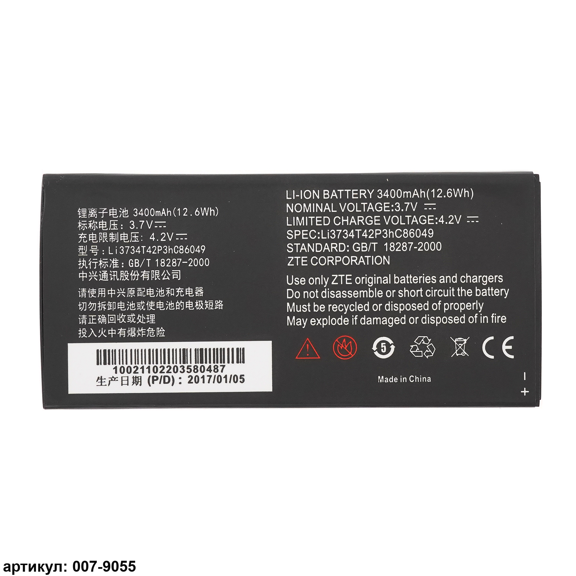 Подходит к планшетам: ZTE T9, V9, V9 Light Tab, V9+, V9A, V9C, V9eСовместимые P/n: CS-ZTV910SL, LI3734T42P3HC86049, SBC791