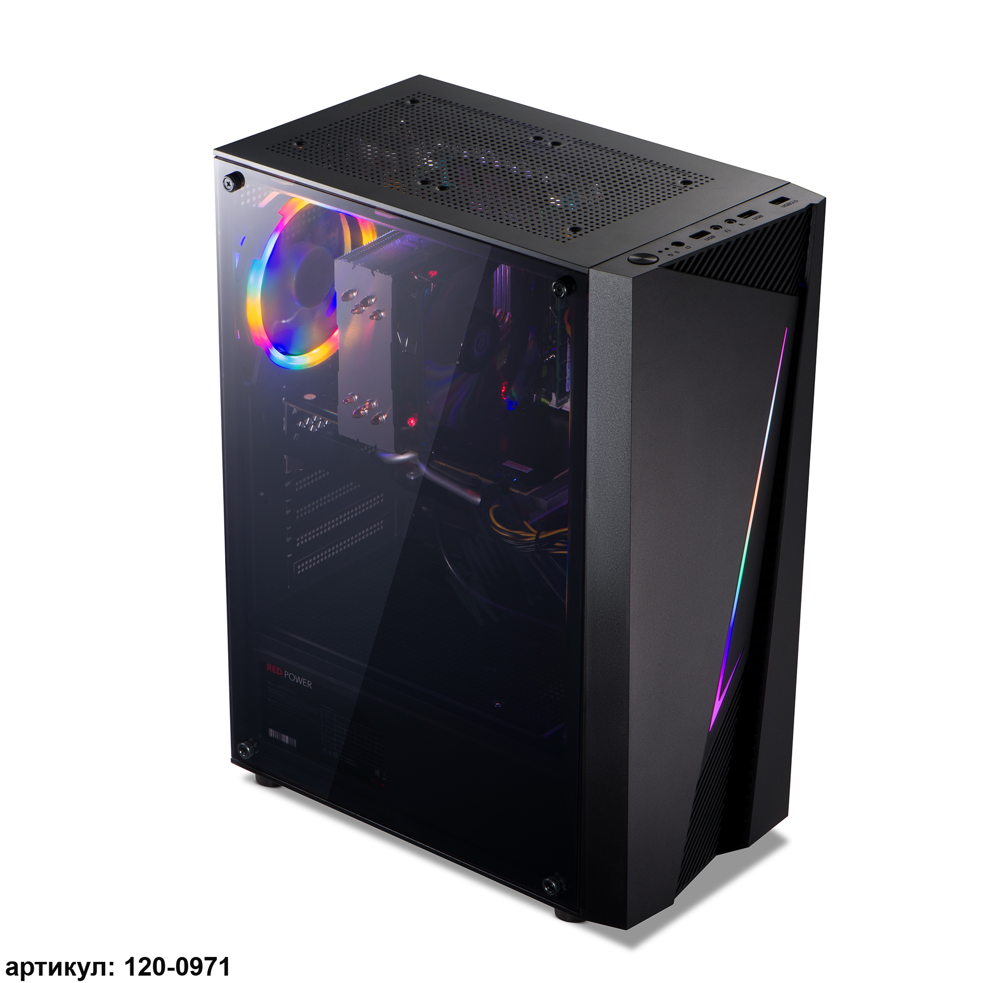· Высокий металлический корпус со светящейся RGB-вставкой спереди и перфорированной верхней панелью предоставляет возможность установки до шести вентиляторов типоразмера 12x12 см, что позволяет создать оптимальную конфигурацию системы охлаждения для эффективного отвода тепла.