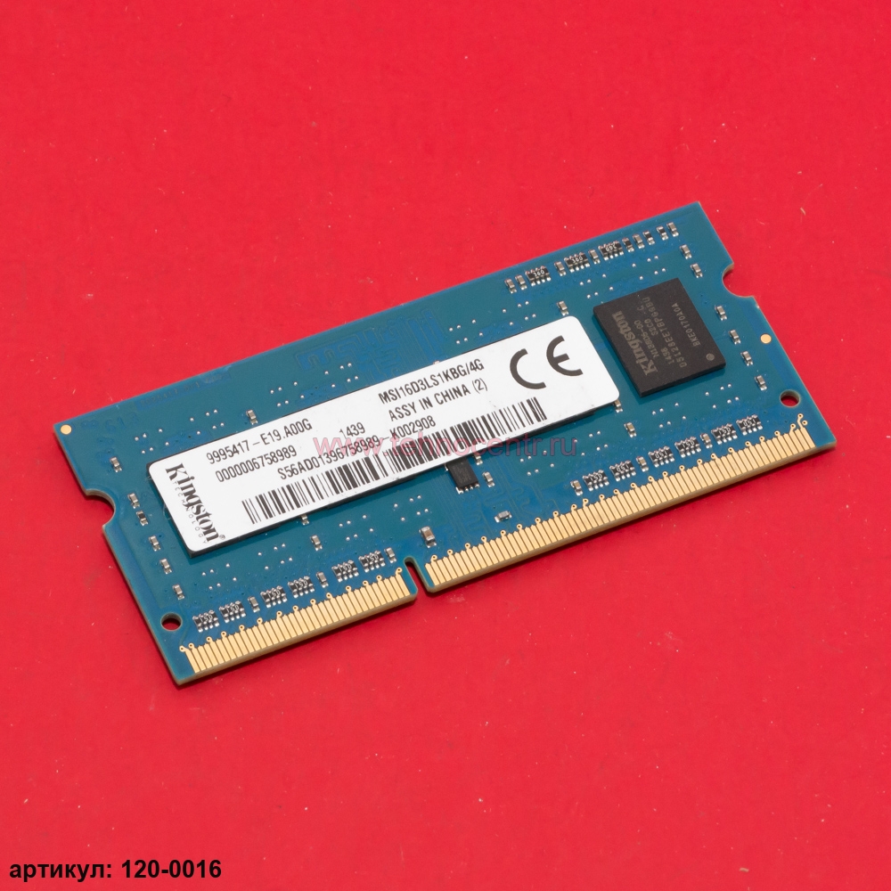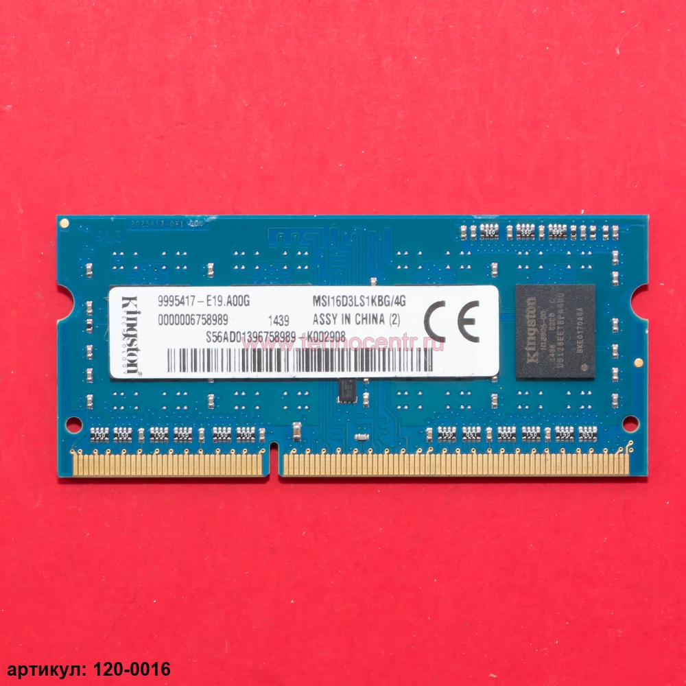 Оперативная память SODIMM 4Gb Kingston DDR3L 1600