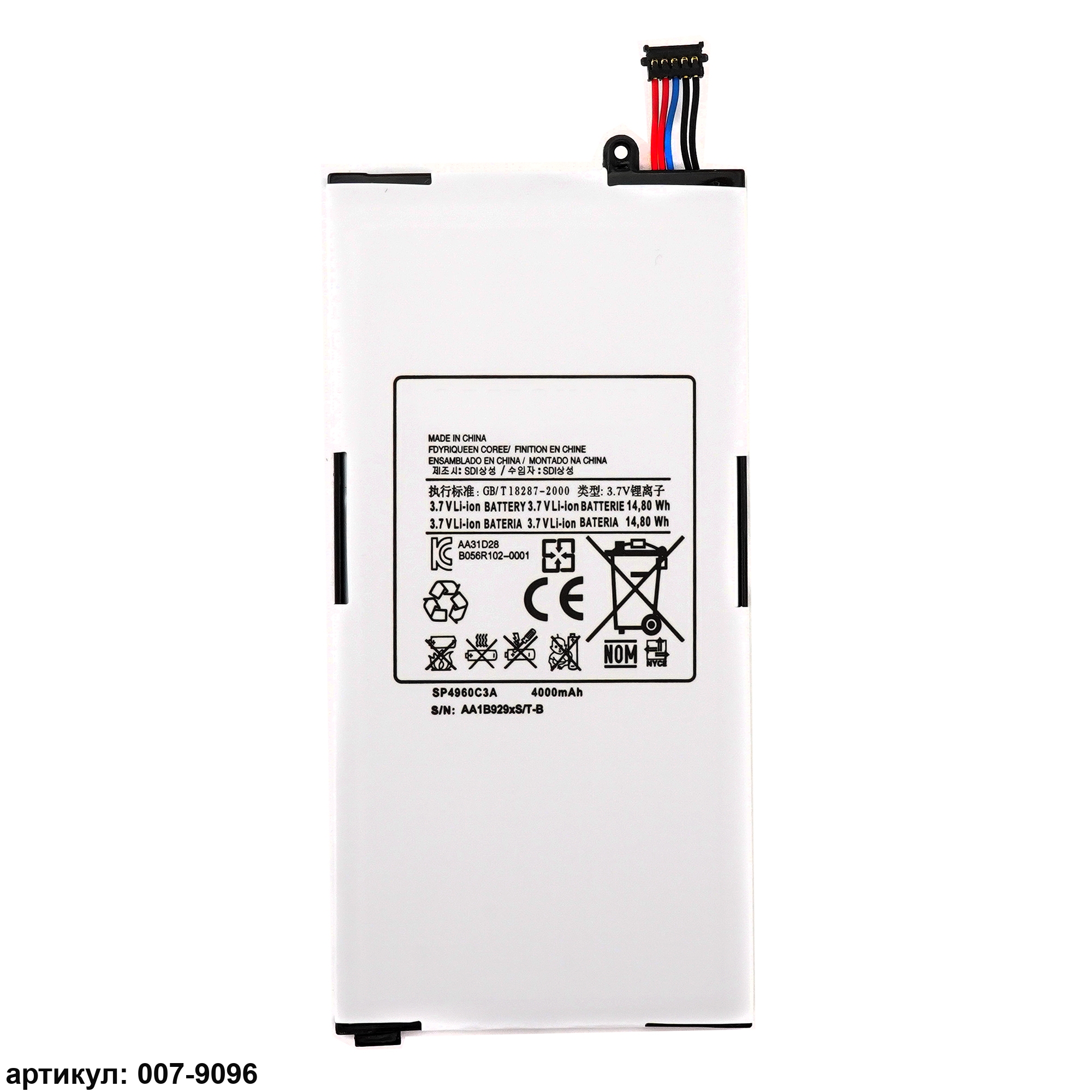 Подходит к планшетам: Samsung Galaxy Tab GT-P1000, GT-P1010Совместимые p/n: CS-SGP100SL, SP4960C3A