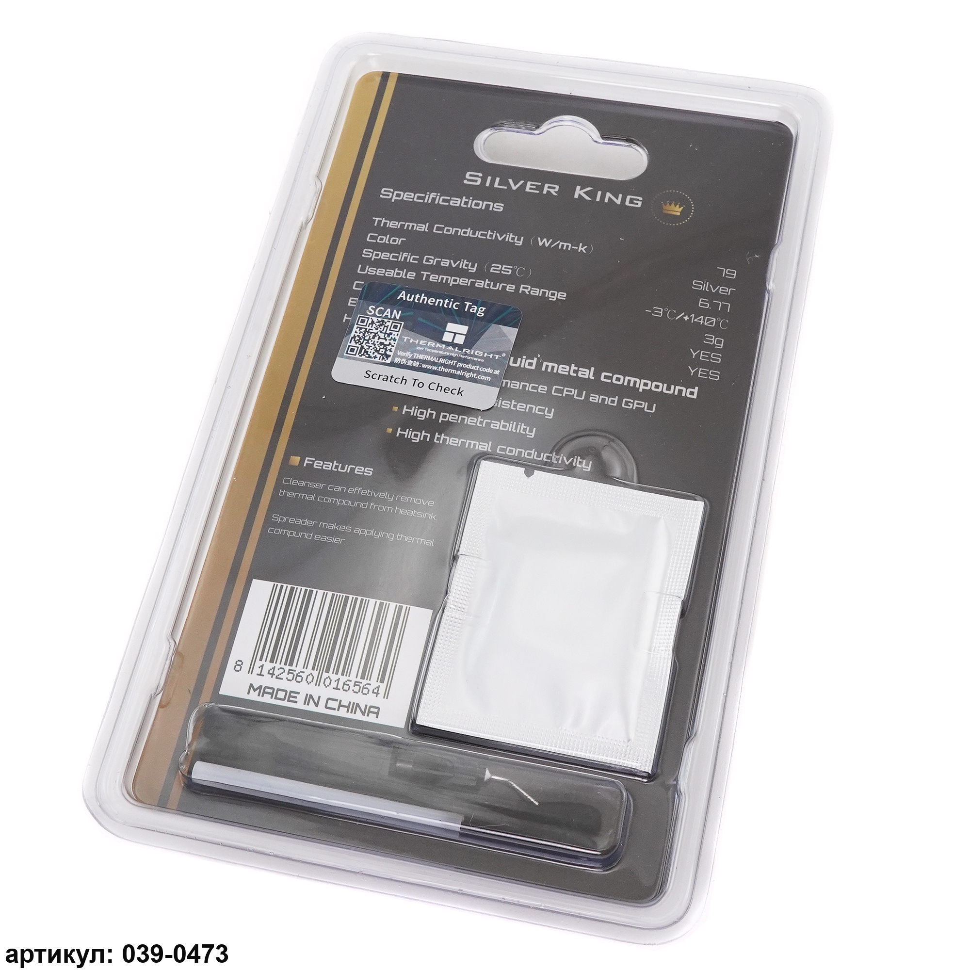 Первая термопаста, состоящая из 100% жидкого металлического сплава. Абсолютно нетоксична и обладает высокой увлажняющей способностью для нескольких материалов, кроме алюминия. Не содержит неметаллических добавок (таких как силикон, оксиды и т. Д.). Не содержит твердых частиц. Благодаря этим свойствам Thermalright Silver King по многим показателям превосходит лучшие высокопроизводительные теплопроводящие пасты.