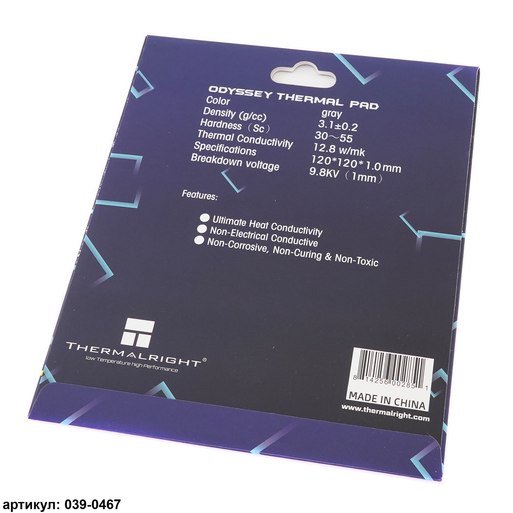 Термопроводящая прокладка размером 12 на 12 см и толщиной 1 миллиметра используется для передачи тепловой энергии от греющихся элементов (видеочипов, модулей памяти, процессоров и т. п.) на радиатор системы охлаждения. Термпопрокладка эластична, легко принимает любую форму и скрадывает элементы неровности двух поверхностей. Следует иметь в виду, что термопрокладки бывают разной толщины и обладают разной теплопроводностью и для каждого конкретного случая надо подбирать свою. Эффективность работы термопрокладки зависит от теплопроводности. Чем выше теплопроводность, тем лучше работает прокладка. В данном случае теплопроводность составляет 12.8 Вт/(м*К)