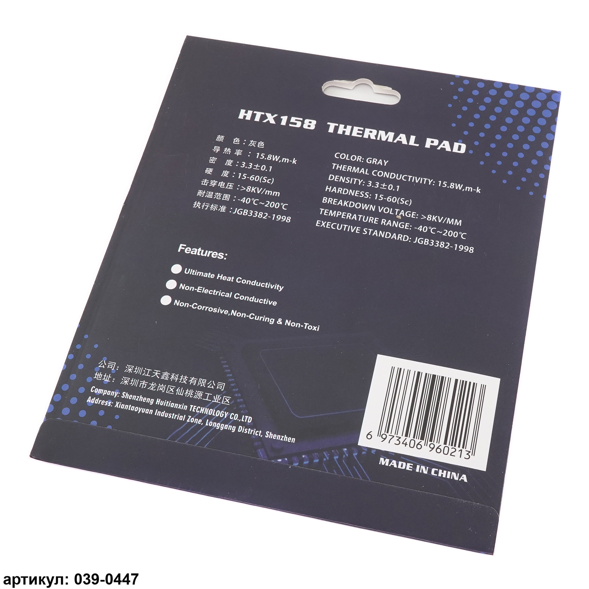 Термопрокладка 120x120х2.5 мм Hutixi HTX158 Thermal Pad 15.8 Вт/(м*К)
